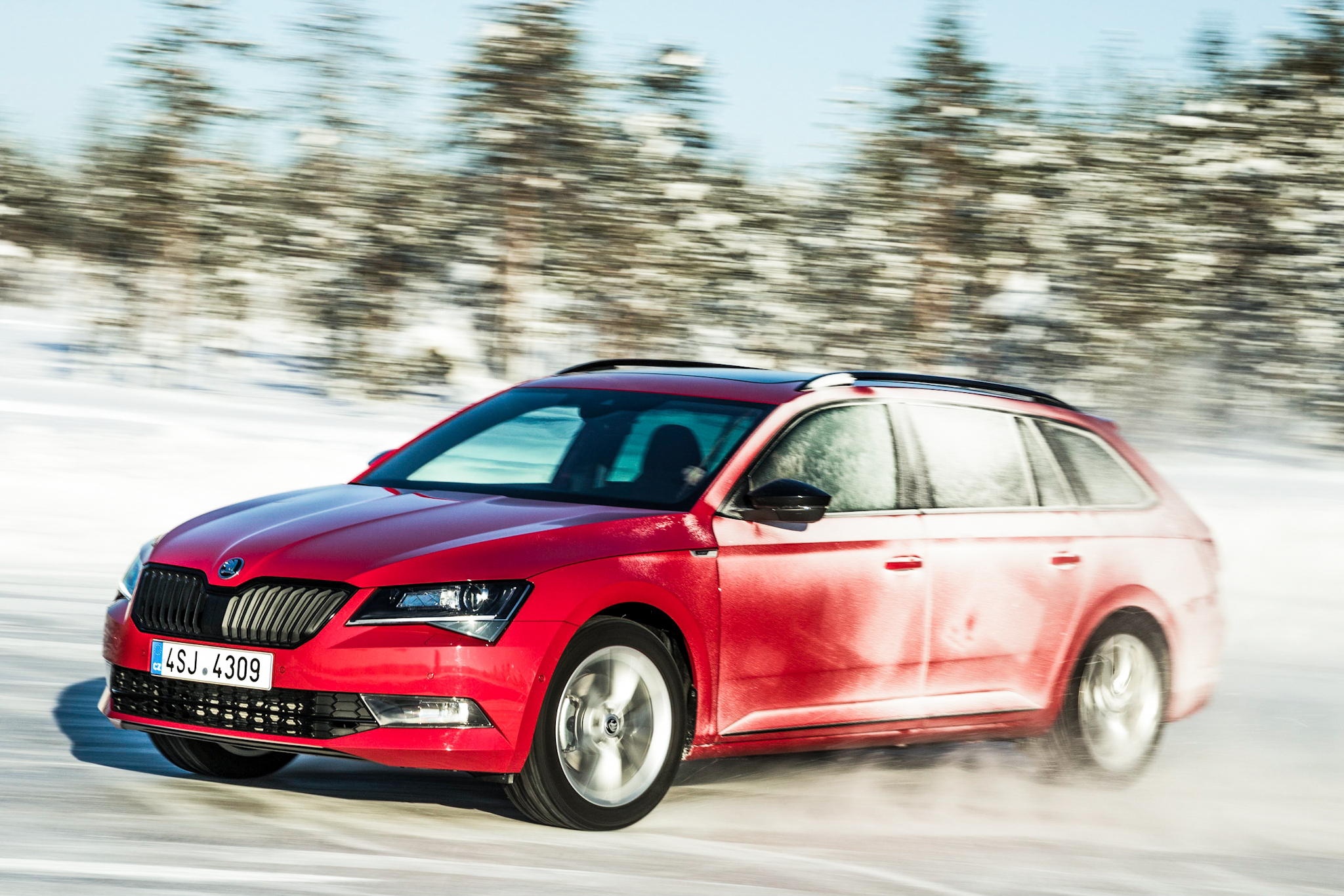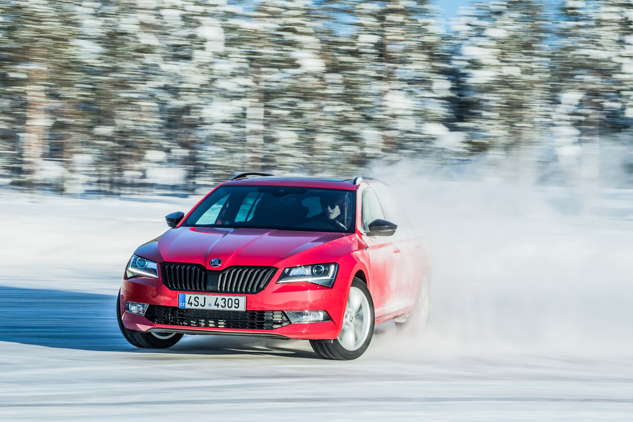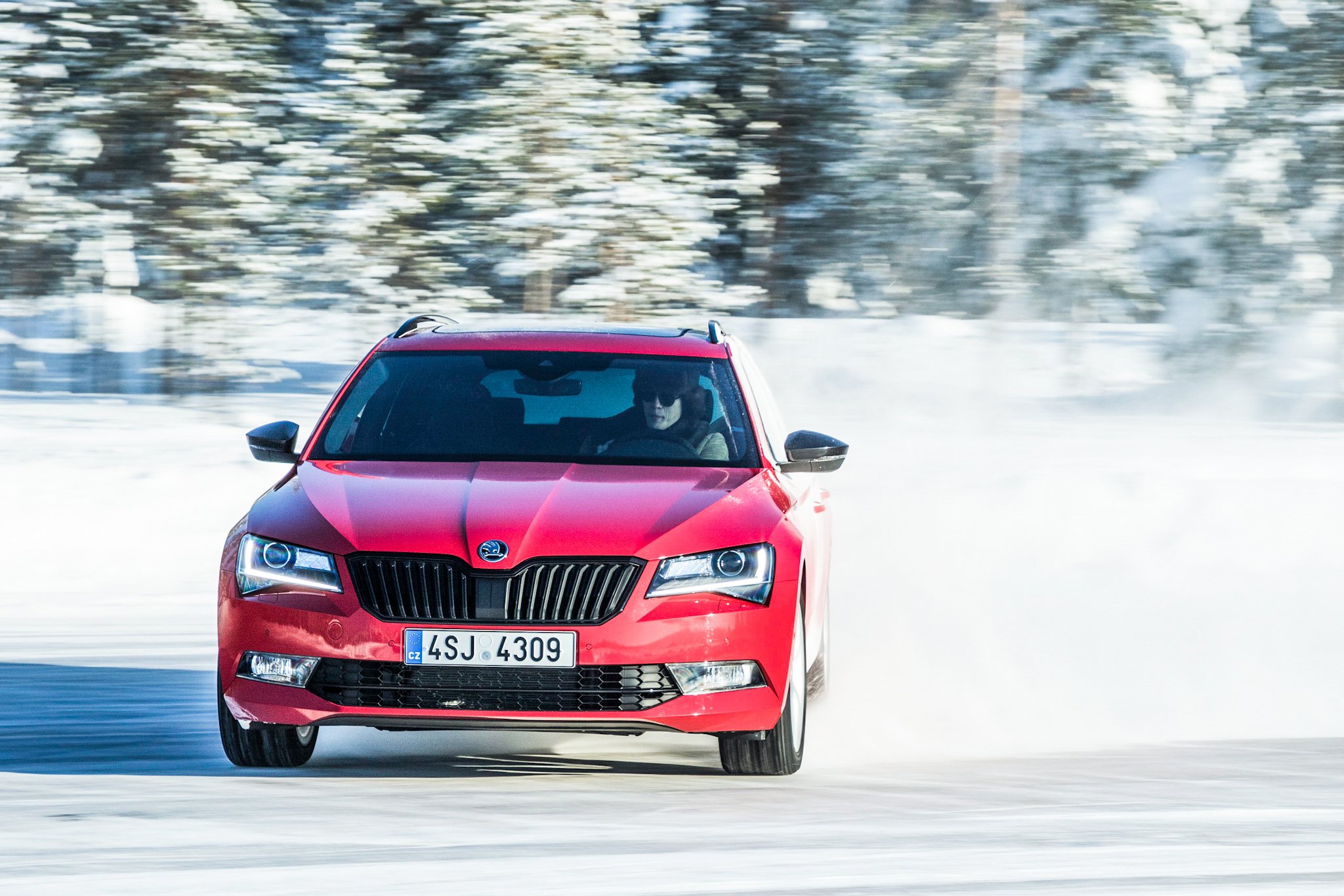 Škoda använder sig av ett Haldex-system som är huvudsakligen framhjulsdrivet tills det finns någon anledning för det att inte längre vara det. Tappar något eller några av hjulen grepp kan då kraften skyfflas om till de andra inom loppet av en millisekund. För att testa detta begav vi oss ut på en isbana som var gjord för att demonstrera Škodas alldeles egna snö-läge.