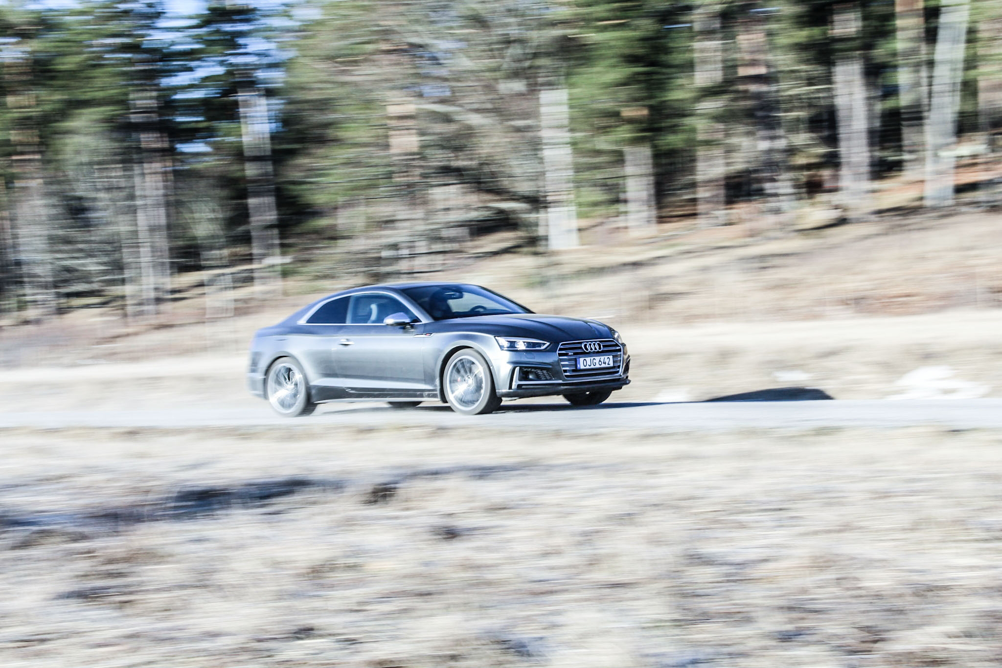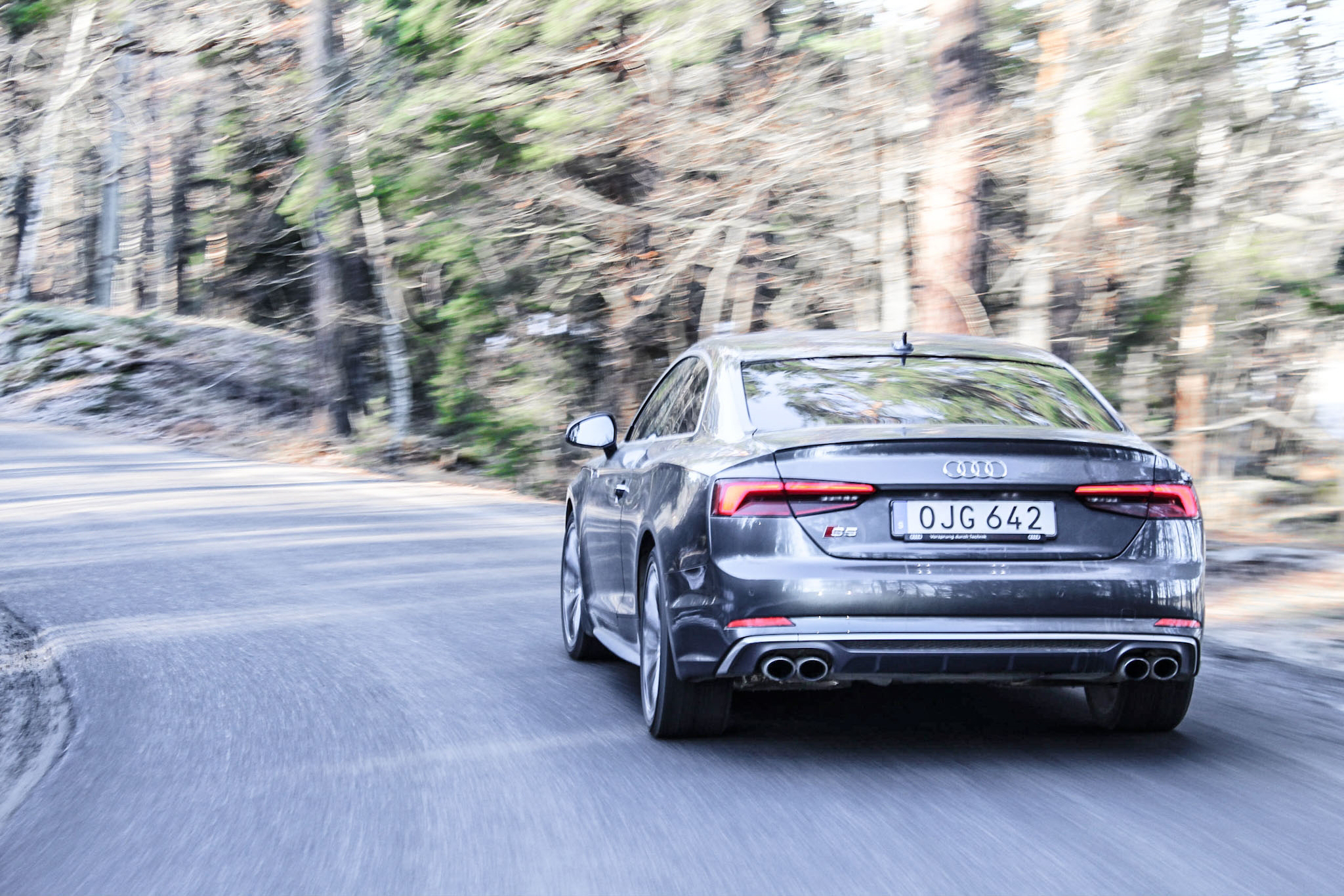 Frågan på allas läppar är givetvis ”är den snabbare än resultatet av en nyligen avfyrad AK-47?”. Svaret på den frågan är tyvärr nej, men tro inte att S5 är motsvarigheten till en ägg-macka för den sakens skull. Gasen i botten resulterar i en 0-100-sprint på 4,7 sekunder. Receptet för detta är en V6:a på 354 hästkrafter, en 8-stegad tiptronic-låda och deras geniala fyrhjulsdriftssystem quattro. Dessa fungerar oerhört väl på en tom landsväg utan fartkameror. Jag är fullkomligt övertygad om att min morfar skulle kunna ta sig runt Ring Knutstorp lika snabbt som jag eftersom S5 är så lättkörd att man varken behöver körkort eller vana bakom ratten för att slå varvrekord med den.
