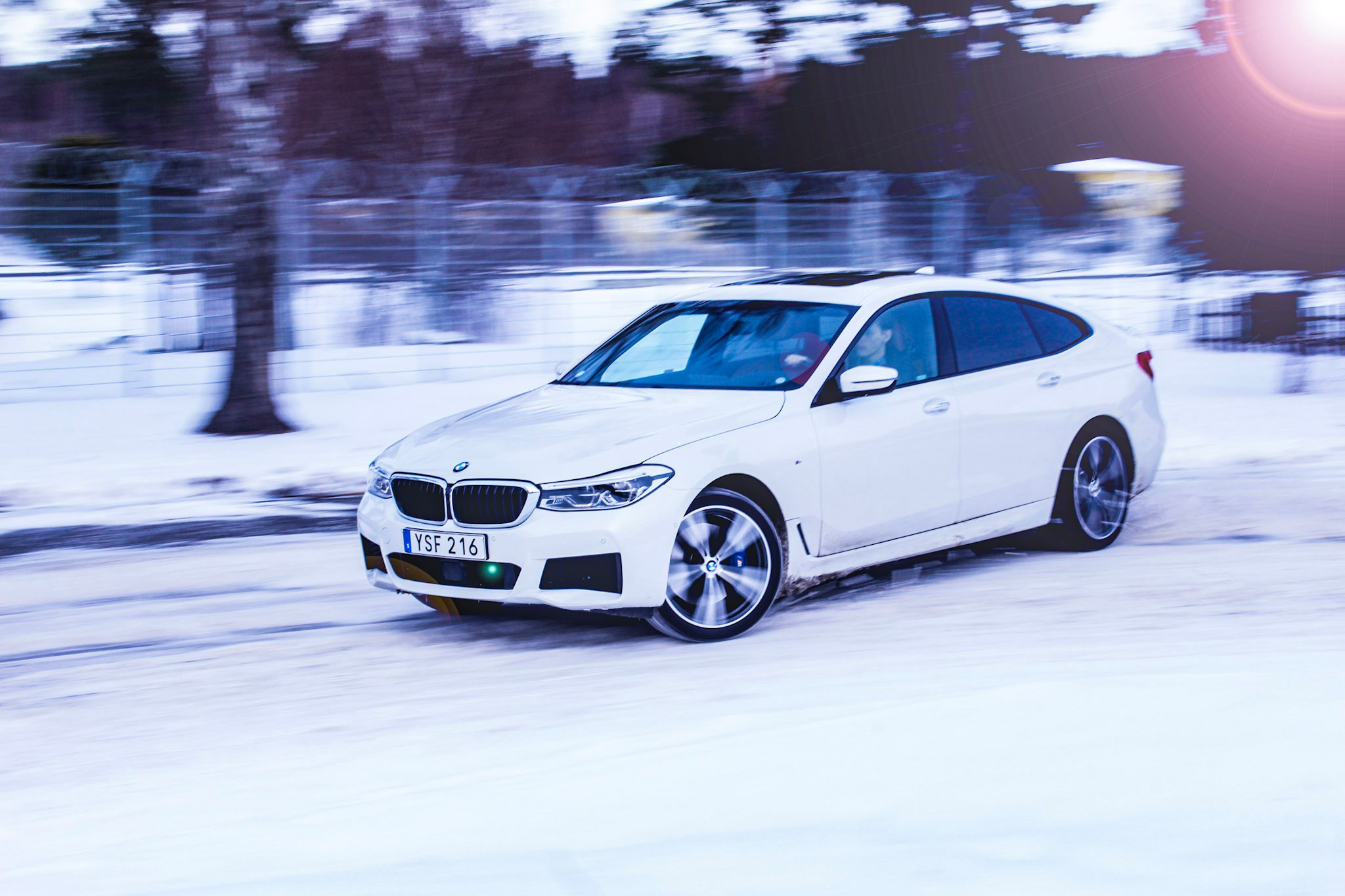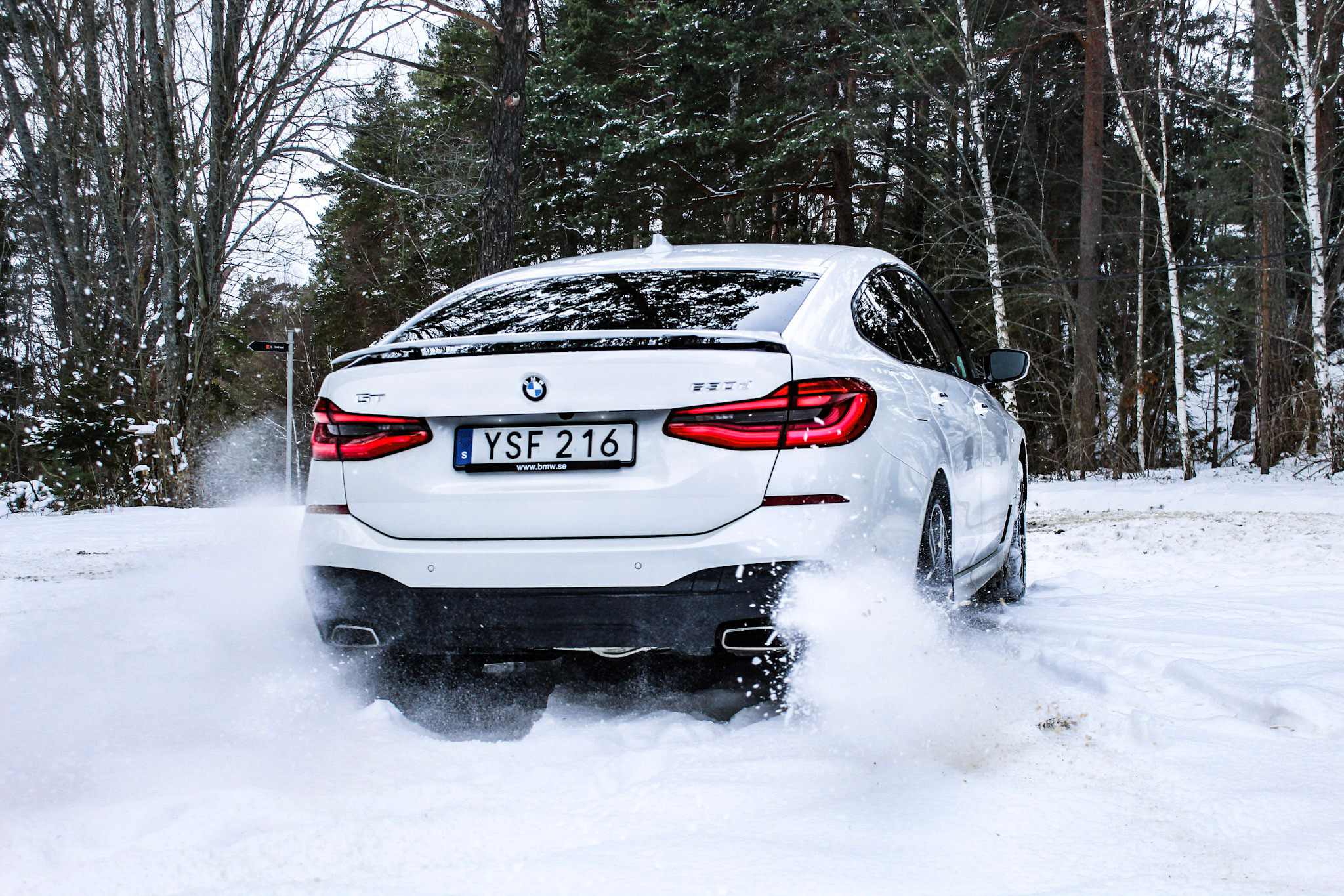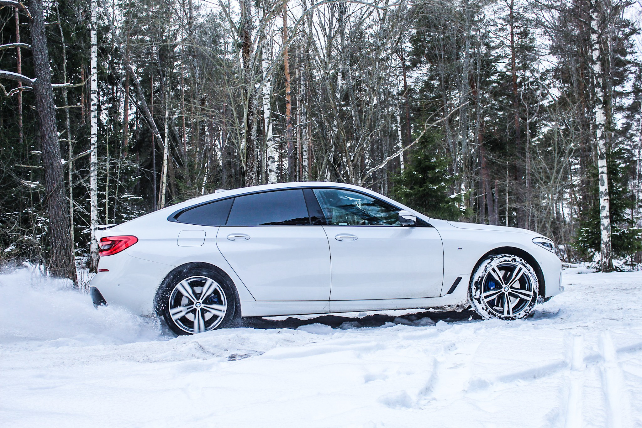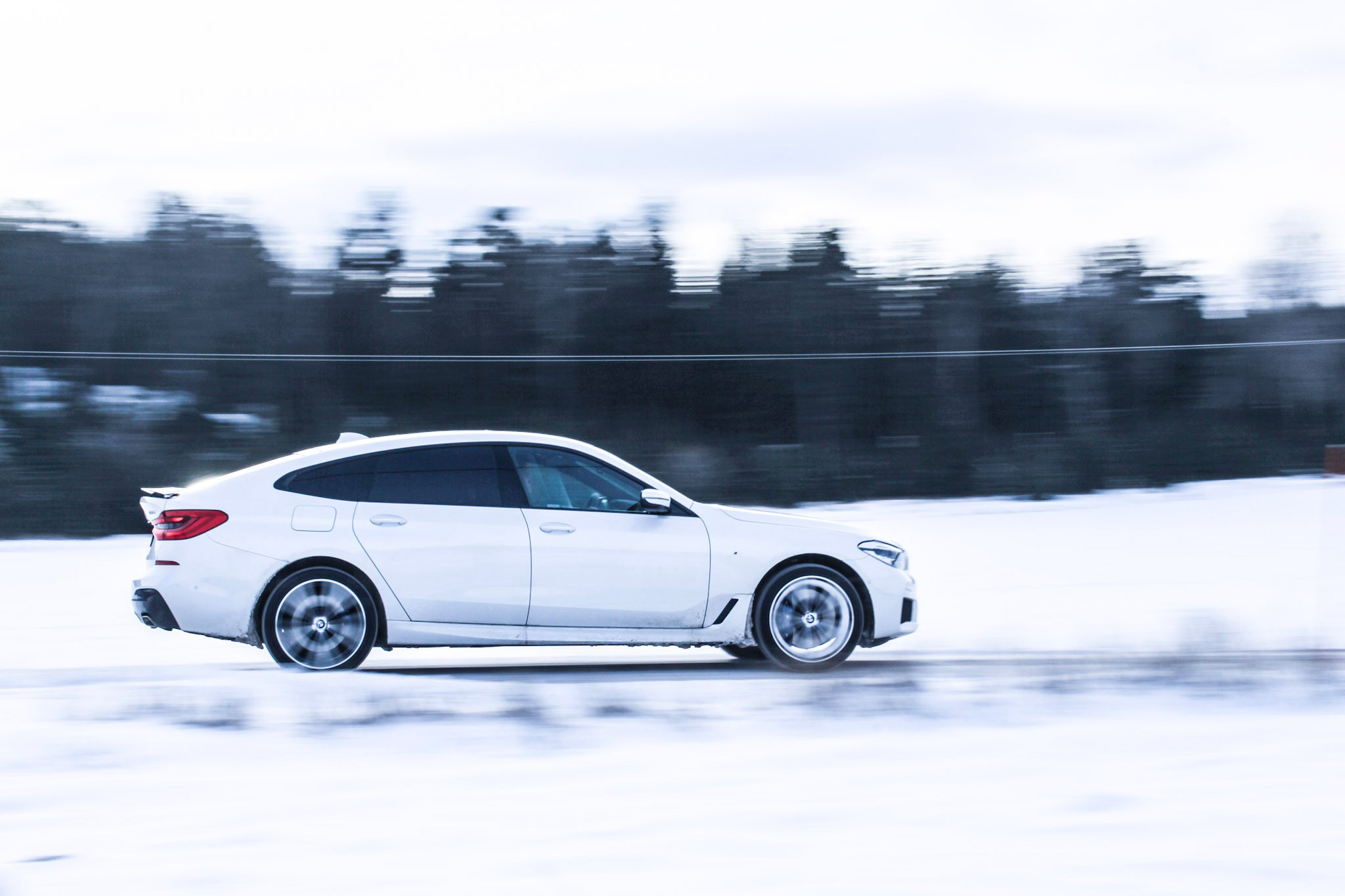 Det bästa sättet att köra 630d GT i snö är med antisladden helt avstängd och sinnena på helspänn. När greppet väl släpper är bilen förvånansvärt förutsägbar och hanterbar. Javisst, den är enormt stor och nästan 200 kg tyngre än motsvarande 5-serie, men den upplevs inte alls så klumpig som siffrorna eller utseendet föreslår. Motorn är dessutom helt fantastiskt vridstinn och responsiv, och växellådan arbetar mjukt men bestämt.