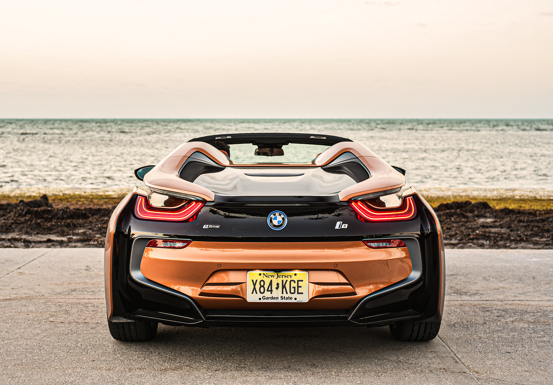 Styrningen känns något gummi-aktig men ändå kommunikativ, och däcken som är smala nog att passa på en cykel gör att man inte behöver köra för kung och fosterland för att stimuleras. Den är genuint underhållande att köra men saknar den dramatik som en mer traditionell drivlina hade erbjudit. Körupplevelsen är unik, något som har att göra med dess ivrighet och det helt otroliga samspelet mellan alla bilens komponenter. Det är givetvis med taket nedfällt som roadstern ska köras – inte minst i Florida – och den lyckas väl med det. Det är knappt något vindbrus i kupén vilket gör att man kan konversera även på motorvägen. Istället för att upplevelsen kompromissas som fallet är i många andra cabrioleter, ser i8 Roadster till att allt istället förgylls.
