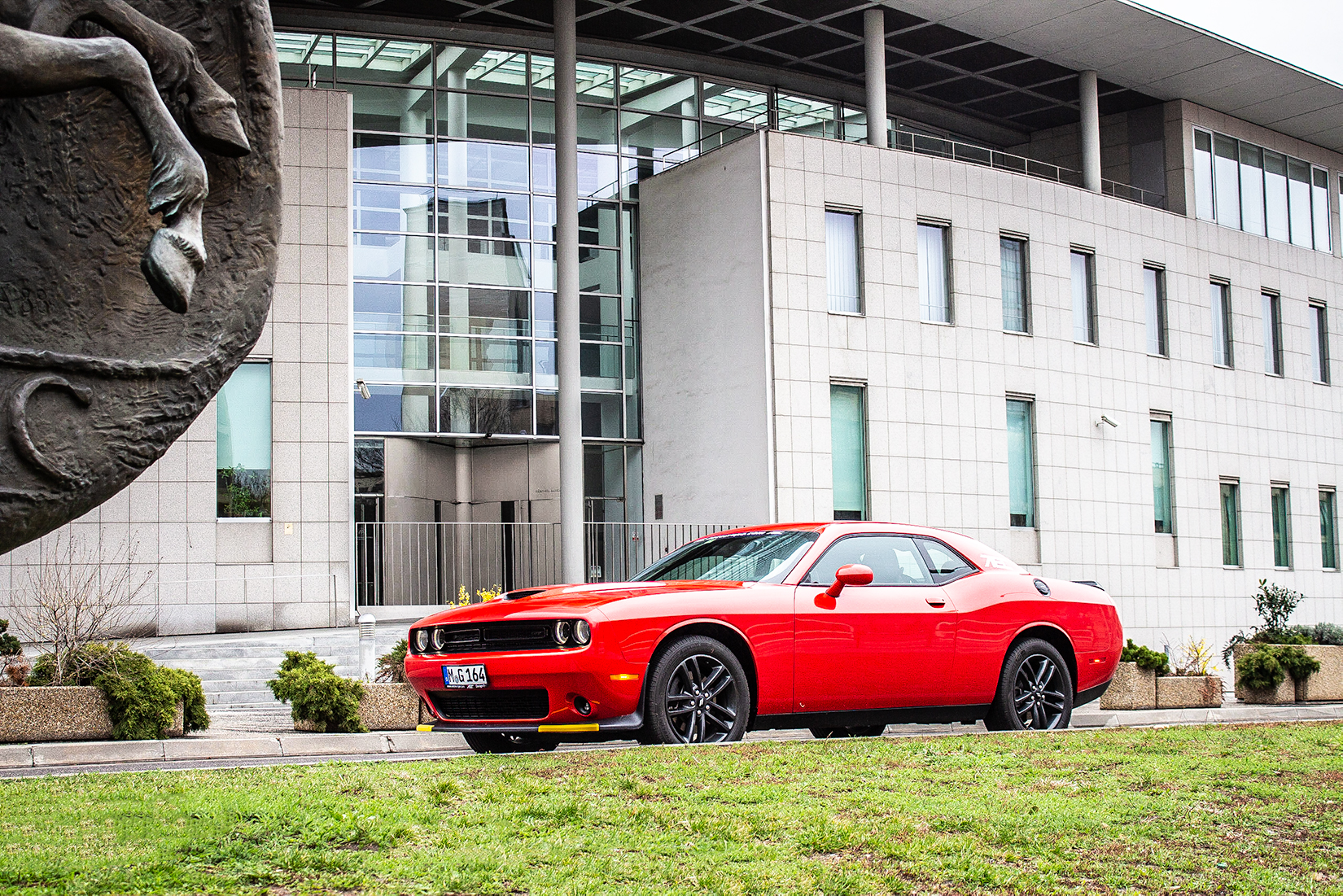 När man först går upp till en Challenger (i synnerhet vår illröda pressbil) har man omedelbart det första köpargumentet klart, bilen ser onekligen väldigt speciell ut. Stora hjulhus, motorhuv som sträcker sig längre än Brexit-förhandlingarna och en front som ser riktigt arg ut.