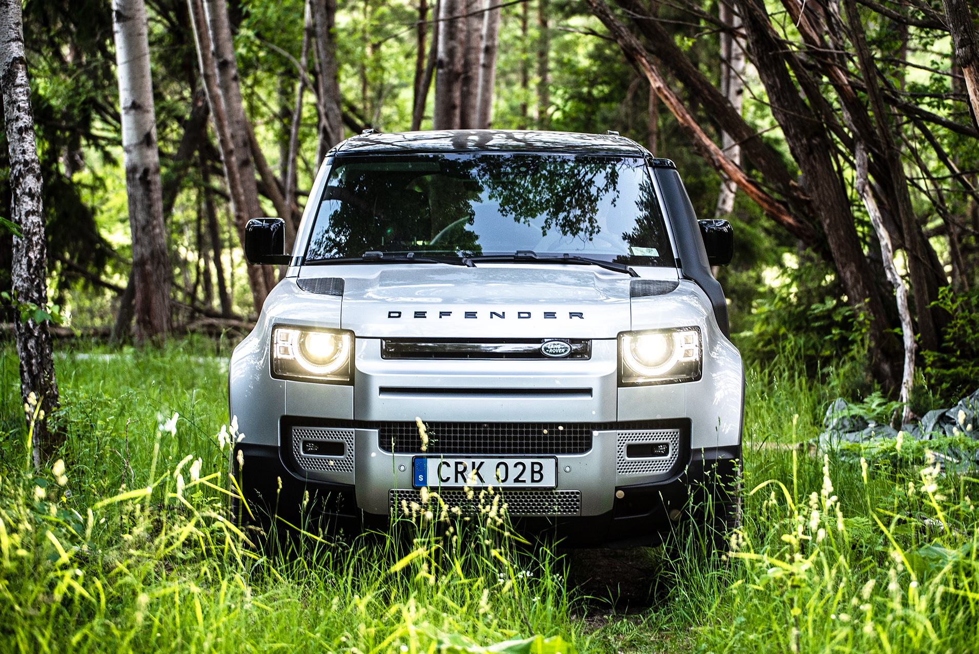 Där nya Defender ska skina som en sol är givetvis i terrängen. Dessvärre erbjuder inte Sverige den extrema miljö som man möts av i exempelvis Namibia men från första anblick fullständigt osar nya Defender pondus. Vi utmanade den i svenska skogar samt på en byggarbetsplats och kunde snabbt konstatera att dess bristningsgräns ligger långt bortom vårt rikes gränser. Den inbringar en känsla av att kunna ta sig fram precis överallt, ett kvitto på dess ambition.