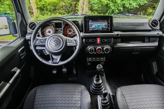 Låt oss inleda med det praktiska. Suzuki Jimny börjar på 189 900 kronor, och för ytterligare 15 000 vardera kan man lägga till automatlåda och det så kallade Inclusive-paketet. Det sistnämnda tvingar bort de tuffa stålfälgarna, men är ändå inte helt fel, eftersom det innebär att bilen utrustas med exempelvis navigation, läderklädd ratt och LED-strålkastare. Även halogenlamporna som ingår i standardutförandet bländar dock av automatiskt, vilket jag gillar i en bil som bokstavligen är gjord för att köra åt skogen. Automatlådan är å andra sidan långt ifrån nödvändig; förbrukningen ligger redan på 7,9 liter per 100 kilometer enligt WLTP-körcykeln, och automaten dricker ytterligare nio deciliter. Dessutom tycker jag att den lite svårarbetade växelspaken i den manuella varianten bidrar till bilens glada karaktär, åtminstone om också jag är på gott humör.