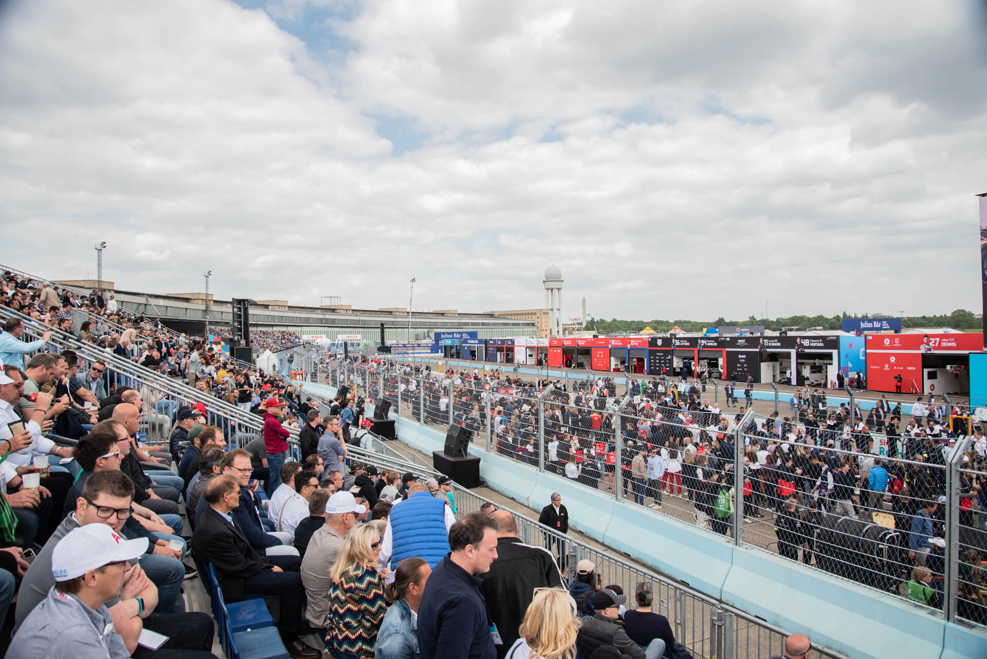 Racet i Berlin går på centralt belagda Tempelhof, den gamla flygplatsen, och den tyska huvudstadens progressiva anda är tveklöst lämpad för en motorsport som Formel E. På plats i Berlin fanns det en herrans massa åskådare och många tillverkare och andra sponsorer var på plats med olika bås, aktiviteter, lounger och dylikt. Det var onekligen mer av en folkfest än jag hade räknat med och läktarna var proppfulla.