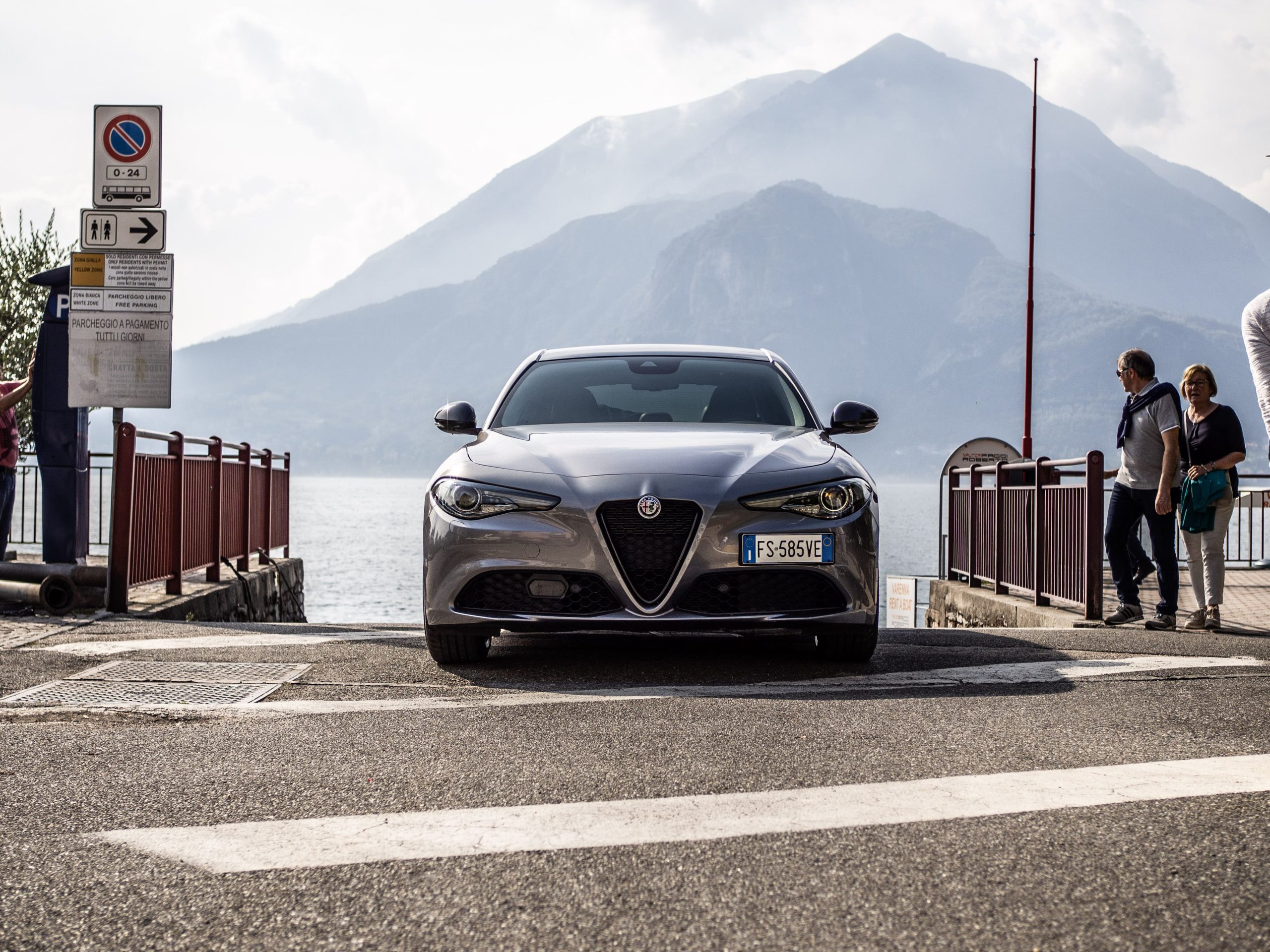 Dagen därpå installerade vi oss återigen i bilen för att färdas söderut, denna gång längs sjöns västra sida. Från Cadenabbia skulle vi ta färjan över till Bellagio, och medan jag utan framgång försökte kortbetala för vår biljett blev Tobias närmad av ytterligare ett fan. Denna gång var det en tämligen översocial jänkare som storögt och närgånget frågade vad tusan det här var för en exotisk bil. Uppenbart vid det här laget var att Alfa Romeos tjusiga formspråk är en designmässig dundersuccé hos våra vänner i väst – åtminstone bland de som semestrar i Lombardiet.