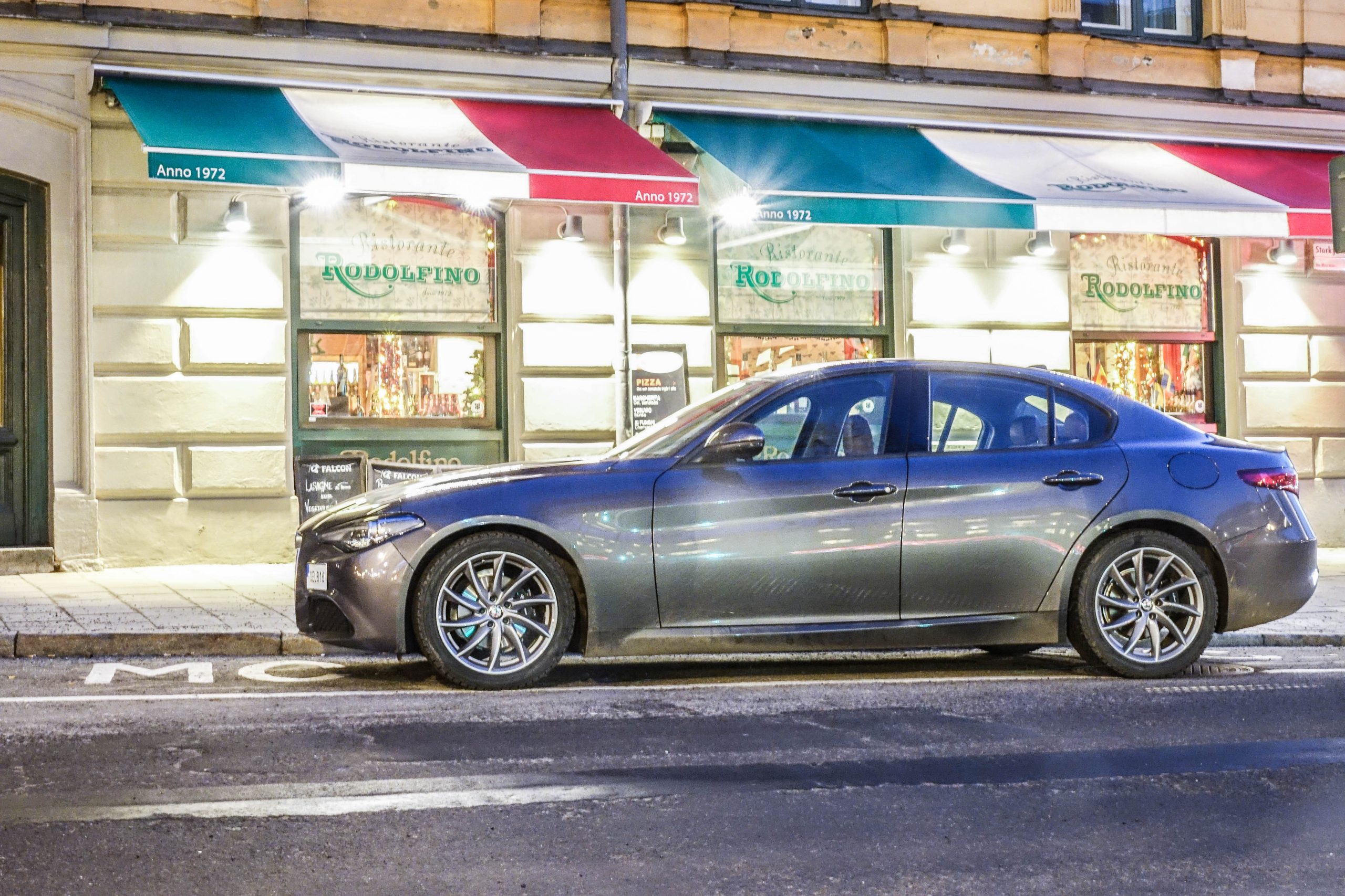 Även utseendet är något som kan göra den mest hårdhudade mannen rörd. Jämfört med dess tyska konkurrenter bidrar den med ett alldeles underbart annorlunda alternativ som inte är något annat än vackert. Grillen är omisskännligt Alfa Romeo, och baklyktorna kompletterar det potenta bakpartiet väl. För de flesta bilarna finns det alltid en vinkel som är lika smickrande som att ta en selfie med kameran nedanför ansiktet.
