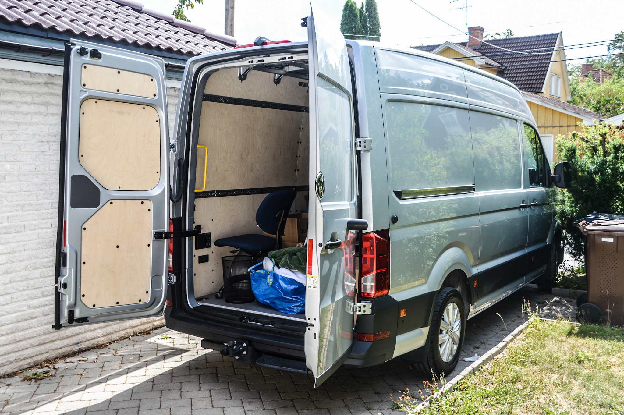 Eftersom jag i stort sett saknade tillhörigheter annat än fyra flyttlådor, en säng och ett bord gick ilastandet mycket fort. Dessutom lyckades jag få plats med allt jag behövde ha med mig hemifrån bak i Craftern vilket innebar att jag bara behövde köra ett enda flyttlass. Lastutrymmet har en mängd smarta funktioner, som exempelvis skenor i taket, vilka underlättar för den som behöver frakta stora prylar, något som jag själv inte hade någon riktig nytta av.