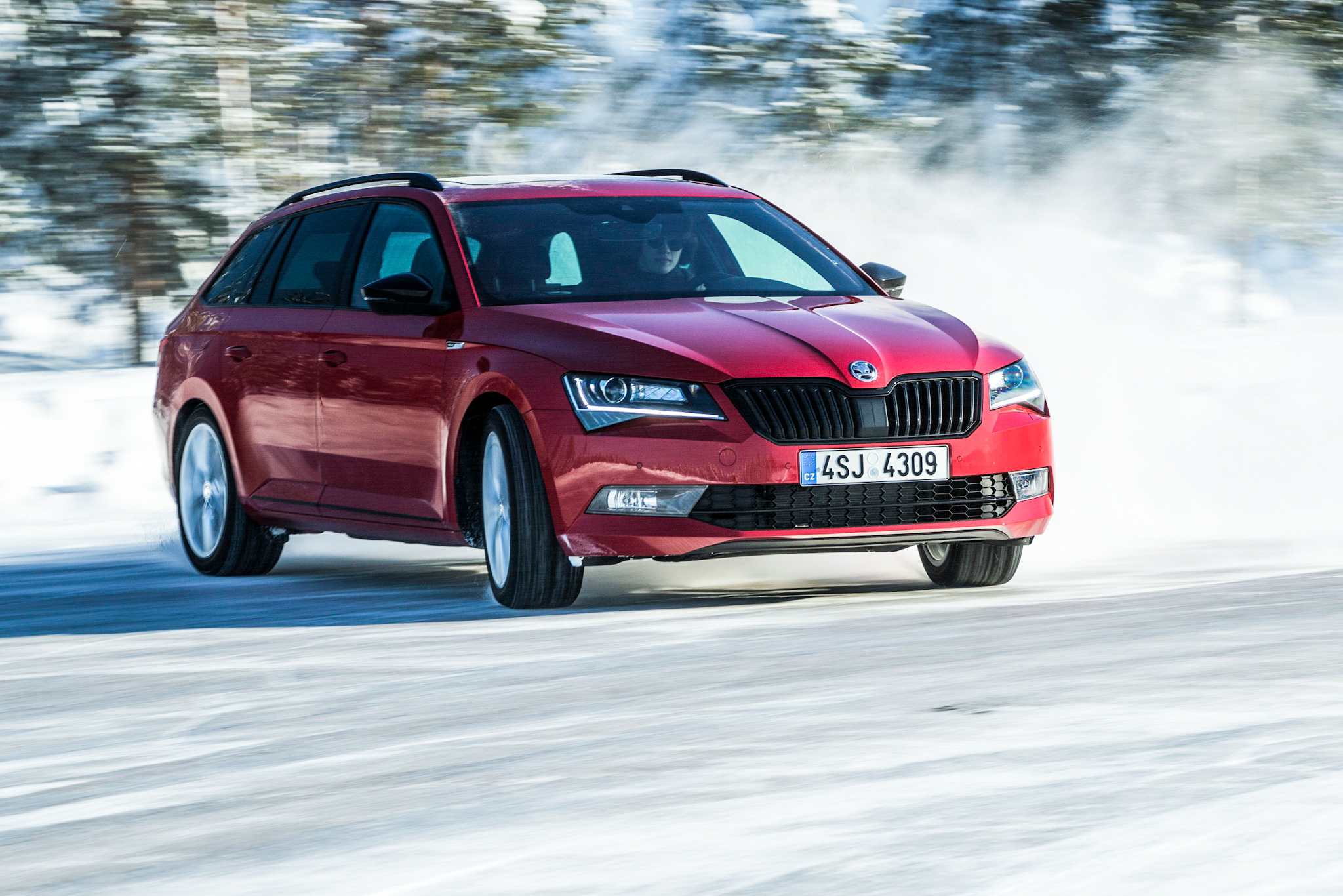 Škoda använder sig av ett Haldex-system som är huvudsakligen framhjulsdrivet tills det finns någon anledning för det att inte längre vara det. Tappar något eller några av hjulen grepp kan då kraften skyfflas om till de andra inom loppet av en millisekund. För att testa detta begav vi oss ut på en isbana som var gjord för att demonstrera Škodas alldeles egna snö-läge.