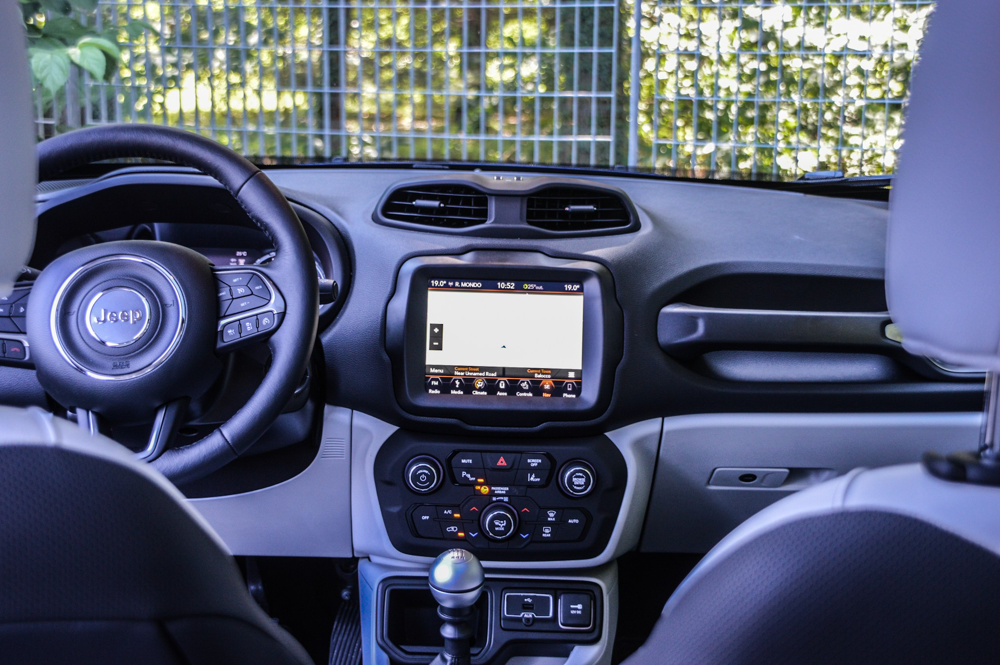 Interiören domineras av infotainmentskärmen på 8,4 tum. Systemet är oerhört höggupplöst och responsen är god. Menyerna är inte alltid helt lättnavigerade men på det stora hela fungerar det bättre än många av konkurrenternas system. Det som stör mig mest när det kommer till interiören är att det är så mycket grå och svart plast. Kvalitetskänslan är inte på något sätt dålig men det ser ändå mörkt och trist ut. Tack och lov kan den som håller med mig om detta personalisera interiören med lite välbehövliga färgklickar som livar upp tillvaron. Dessutom är små Jeep-grillar strösslade över insidan av bilen vilket tillför en härlig känsla. Det blir lite av en lek att försöka leta reda på alla grillar vilket visar på att Jeep inte tar sig själv på för stort allvar.