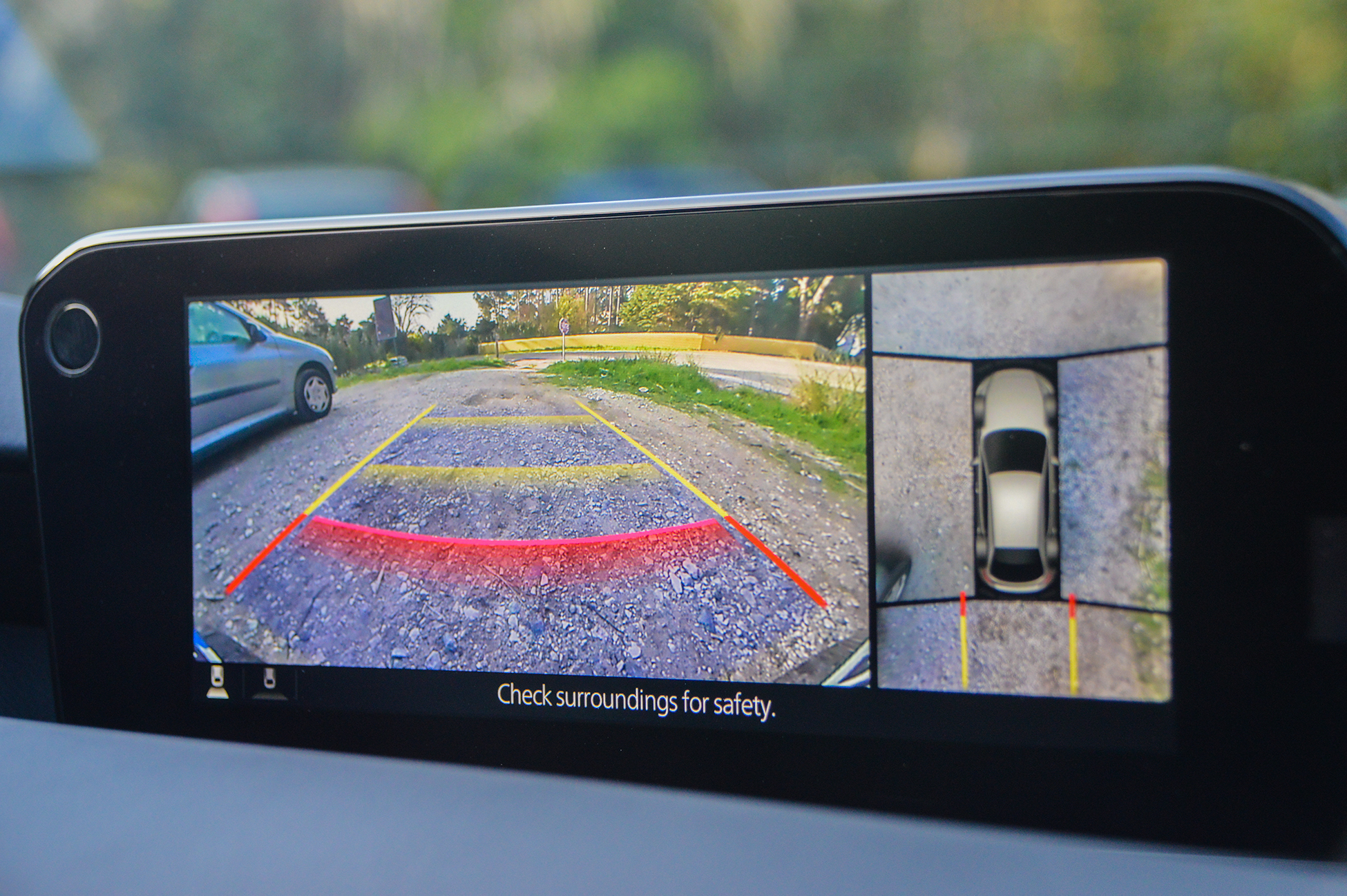 På insidan fortsätter man att bombarderas med indikationer på att man inte alls sitter i en rival till en Ford Focus eller Honda Civic. Körpositionen är låg och ordentligt justerbar, precis som i valfri sportcoupé. Detaljer som Bose-ljudsystemet med högtalargaller i metall, det nya infotainmentsystemet som är snyggt och uppenbart genomarbetat, och den kraftigt förbättrade knappkänslan ger en rejäl premiumkänsla. Det är nästan svårt att tro att man faktiskt sitter i en Mazda…