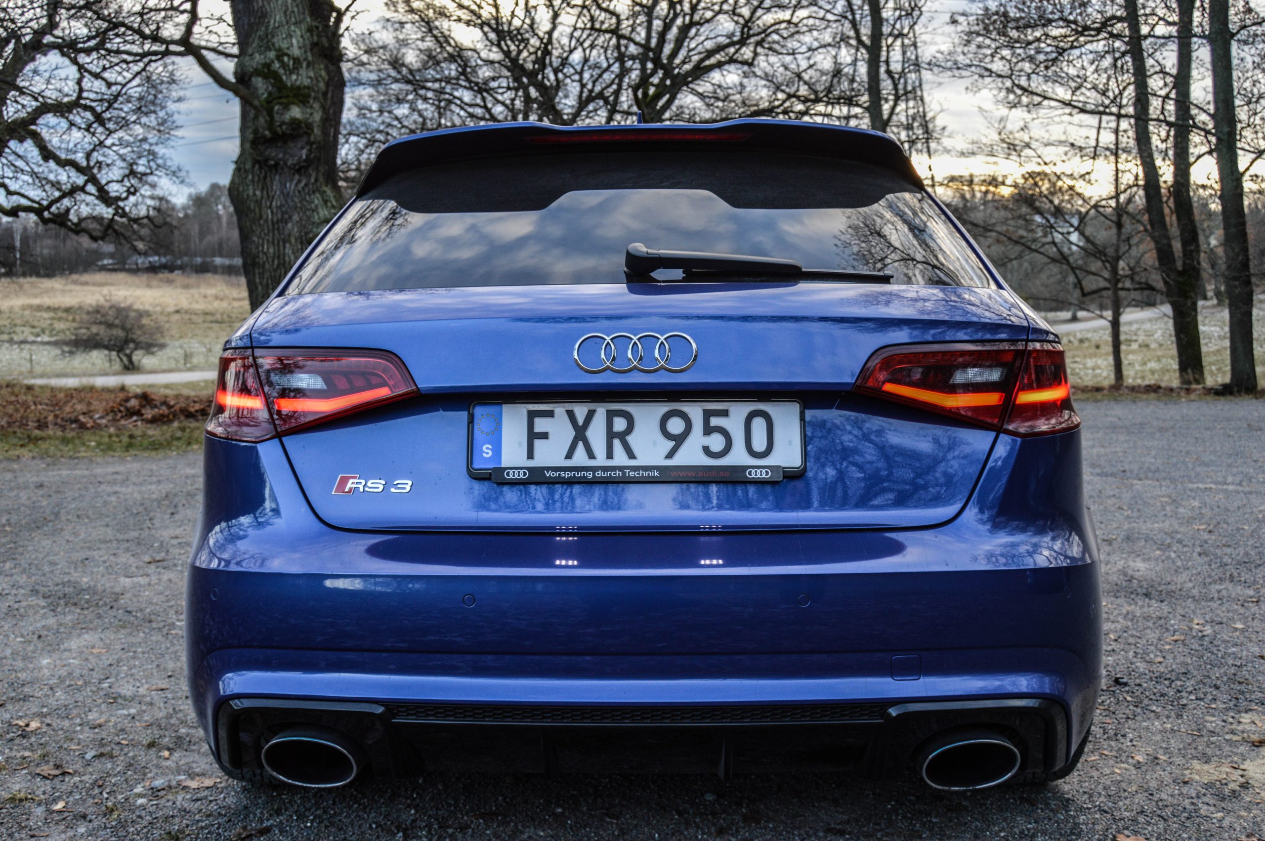 Dessa är väldigt diskreta ting men för att vara helt säker på sin sak är det bara att kolla på utblåsen. RS3:an har två stycken helt enorma utblås medan S3:an har fyra utblås. Kulören på RS3:an vi fick låna klädde verkligen bilen väl vilket förhöjde intrycket. I det stora hela är alltså nya Audi RS3 en lagom diskret men samtidigt oerhört maffig bil som faktiskt vände på en hel del huvuden.