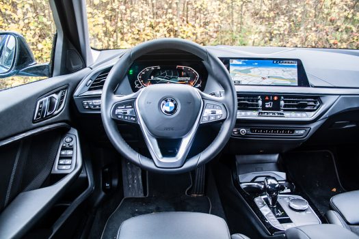 Innan vi går in på detta måste vi dock diskutera fördelarna med att ställa motorn på tvären och skicka kraften till framhjulen (utöver sänkta utvecklings- och produktionskostnader). Det man vinner är utrymme, och genom att flytta fram brandväggen är nya 1-serien betydligt rymligare än sin föregångare – trots att bilen varken blivit markant bredare eller längre. Detta märks inte minst i baksätet och bagageutrymmet, och 1-serien kan nu för första gången mäta sig med konkurrenterna vad gäller utrymme.