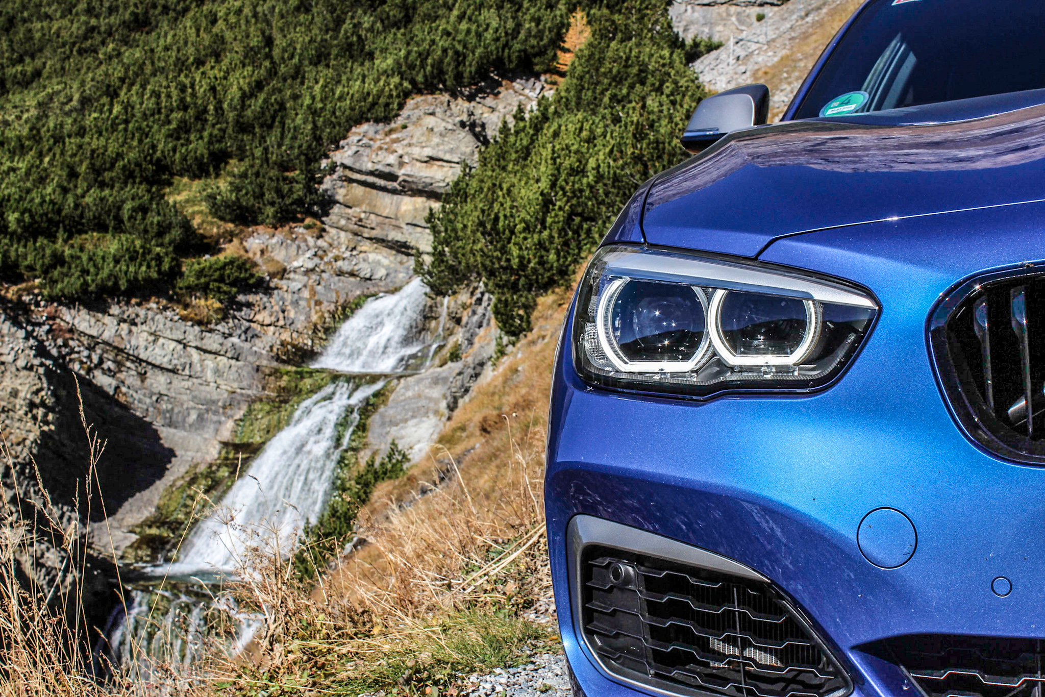Stelviopasset är uppdelat i två delar med en framsida som innehåller allt från skogspartier till hårnålar med kullersten samt en baksida med mer öppna sträckor. På framsidan gäller det att hålla tungan rätt i mun för att inte studsa av vägen och ner mot förtidspension. I en vanlig ”sportbil” är dessa partier väldigt utmanande eftersom de smala utrymmena och det ojämna väglaget gör att man lätt tappar det förtroende som behövs för att satsa fullt ut. I M140i är det dock annorlunda eftersom bilen inte upplevs som för stor, fjädringen är tillförlitlig och det mekaniska greppet är fenomenalt. Därför känns det aldrig som att bilen blivit felplacerad och man kan fokusera på att satsa hårt utan att vara rädd.