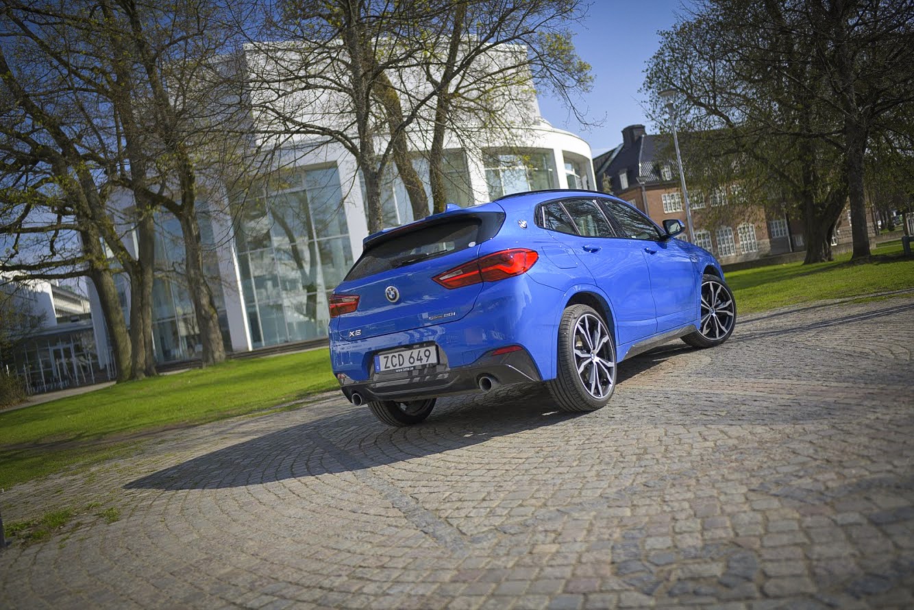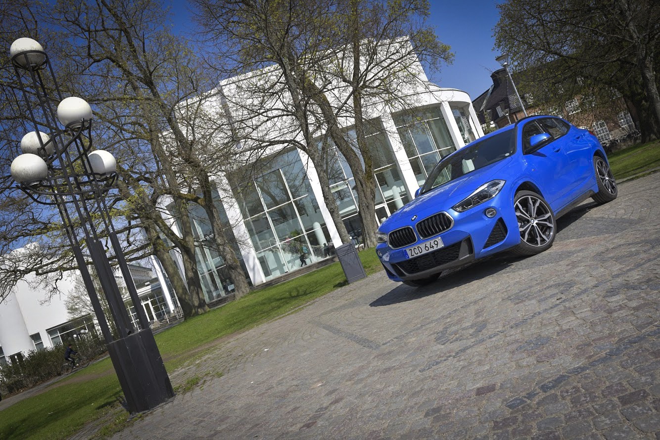 Bakom den tjocka M-ratten är det enkelt att bli lika road som ett barn med ett åkband på Liseberg. Du tar gärna omvägar hem från jobbet bara för att känna på det fina samspelet mellan motor, växellåda och chassi. Testbilens M-sportpaket gör att bilen sänks 10 mm närmare marken vilket bidrar till en ännu mer alert och inspirerande körupplevelse. Bilen trivs med andra ord mer på kurviga vägar än vad den gör på motorväg och det är det som gör BMW X2 unik i klassen – den uppskattar att leka.