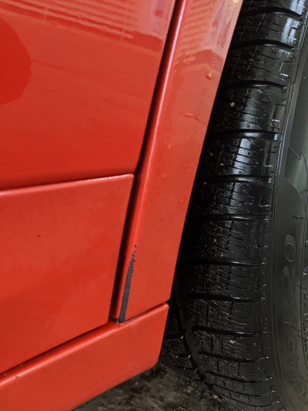 Som ni ser på bilderna finns det en sidolist som går längs bilens sida vars funktion är att öka downforce i höga hastigheter. Den agerar även som en tratt som samlar all sand och salt och skjuter bak den mot partiet där lacken blästras bort. Som ni kan se på bilden går den rakt igenom lacken och det enda som finns kvar är målad kaross. Det innebär alltså att om du kör din BMW X4 M på en grusväg eller en väg som blivit sandad eller saltad så kommer du behöva lacka om den. Hur det inte upptäcktes genom hela utvecklingsprocessen är för mig en gåta. Det är knappast hållbart att behöva lacka om bilen efter varje vinter.