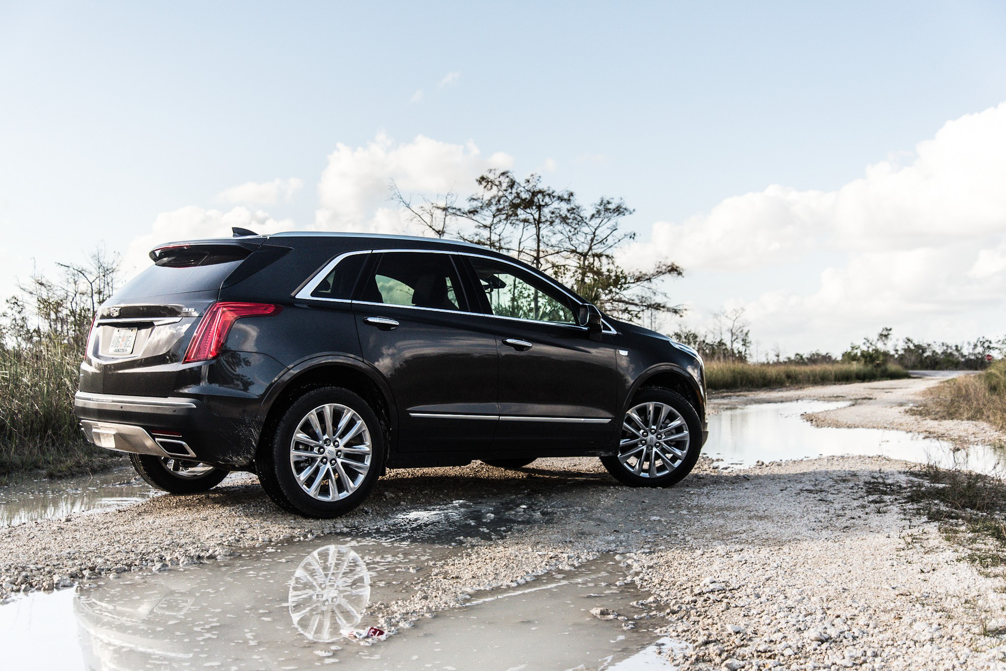 Jag har haft gott om tid på mig att bilda mig en uppfattning om XT5:s utseende. Den är populär i Miami vilket innebär att jag ser den för jämnan. Jag skulle beskriva den som progressiv och annorlunda, något som kan tolkas som både positivt och negativt. Den framstår som en bit av USA och för sig själv med stolthet. I mina ögon är den lite för tegelstensliknande för att kallas för attraktiv, men den lyckas undvika de lite mer böljande linjer som tyskarna kommer med. Interiören är precis som man förväntar sig – en kaskad av trä, läder och komfortorienterade attribut. Både trät och lädret är äkta vilket pekar på att Cadillac har ansträngt sig.