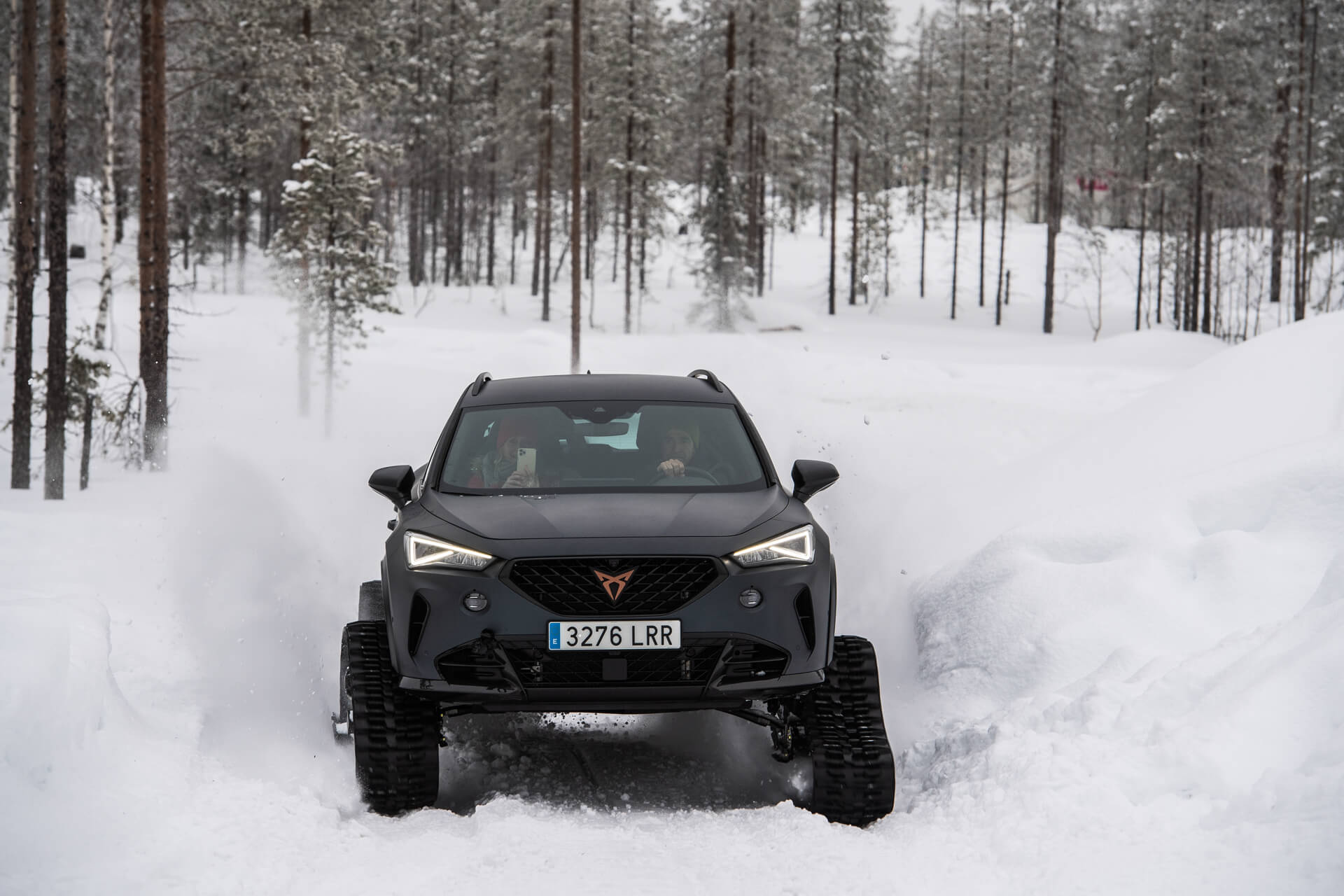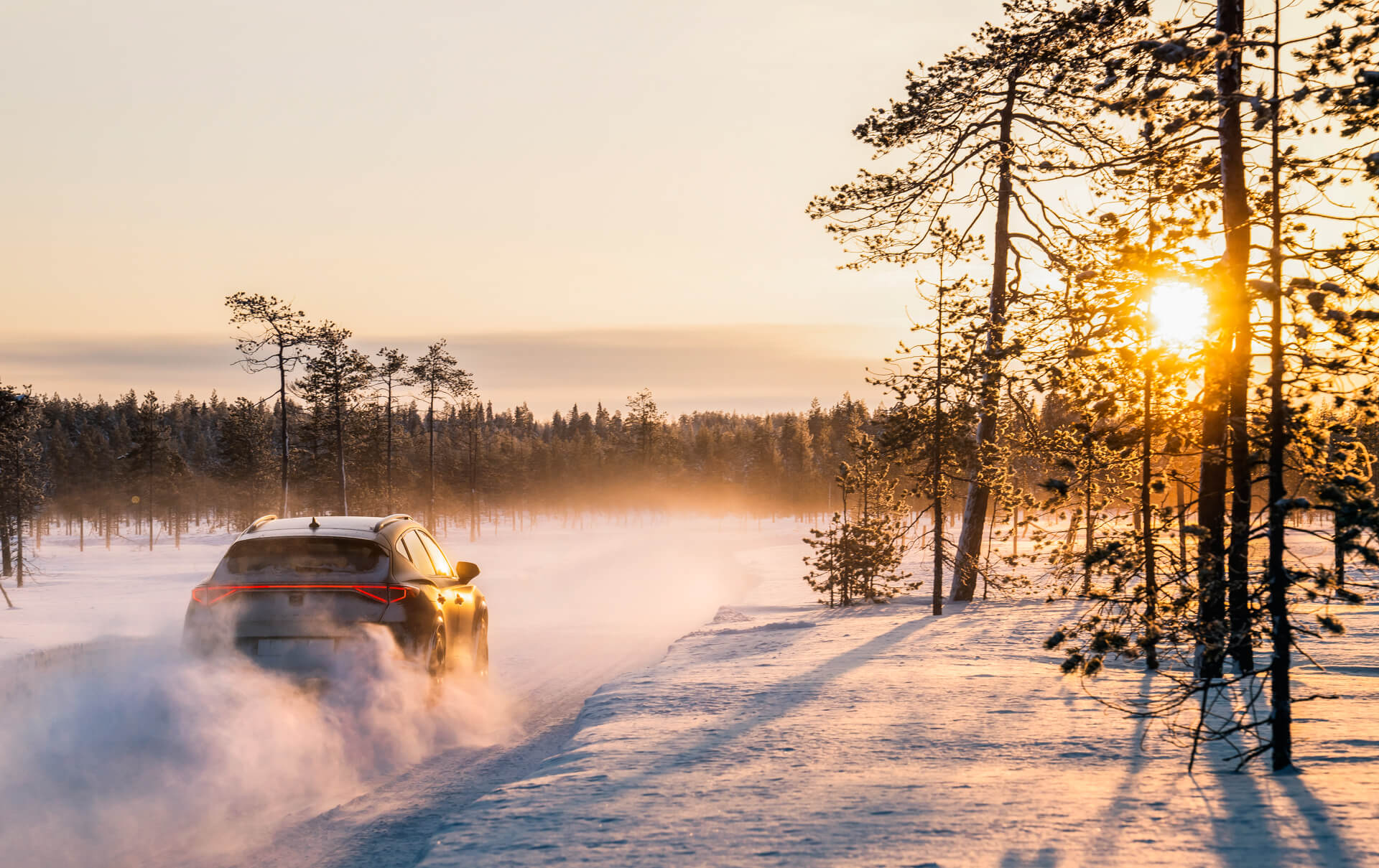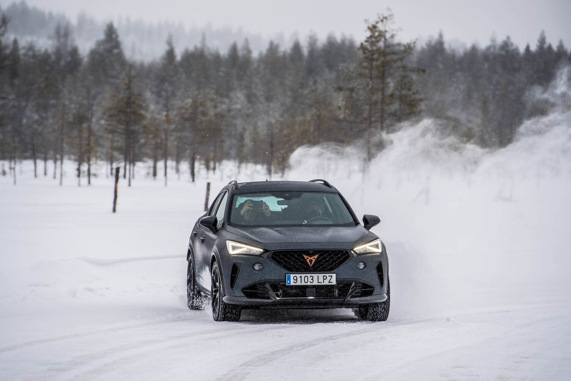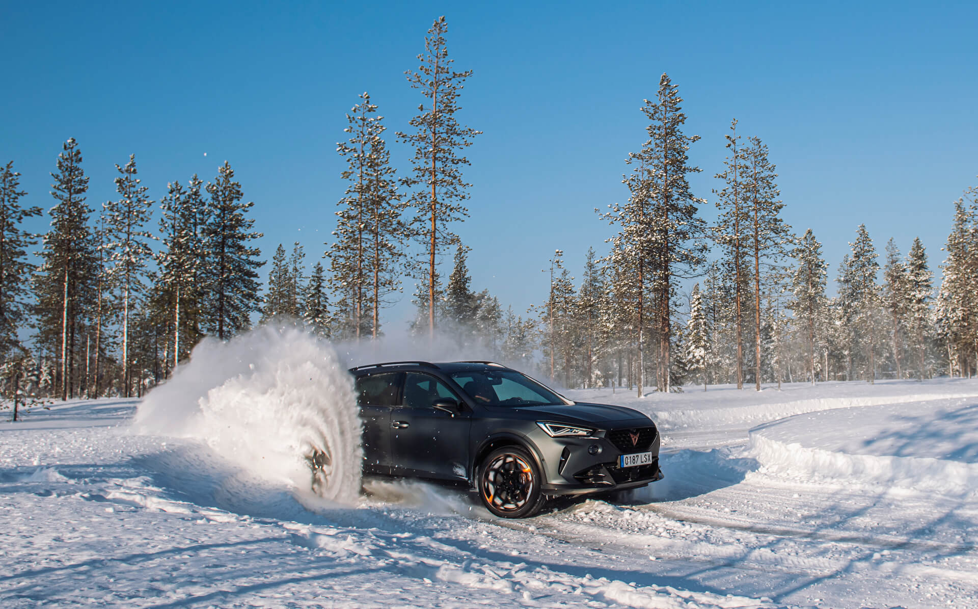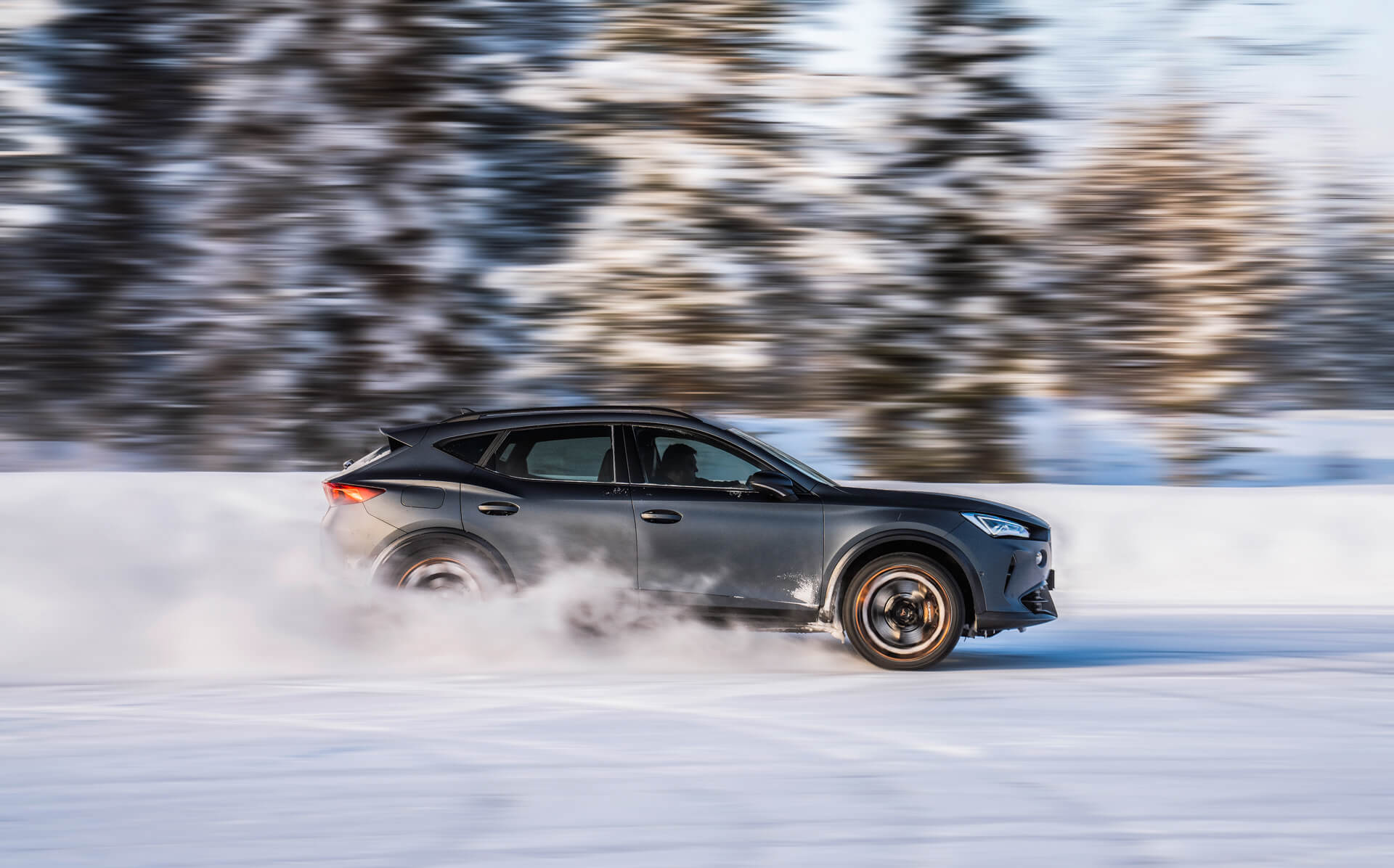 Vägen var avstängd för annan trafik och vi fick köra hack i häl på en guide. Snön var djup varför Formentors mer suv-iga framtoning och fyrhjulsdrift gjorde susen. Jag la direkt i driftläget och även på smala, snöbelagda finska skogsvägar var Formentor VZ5 oerhört lättkontrollerad. Även om vi inte brassade på i samma fart som faktiska rallybilar tog sig Formentor VZ5 an isen och snön med bravur.