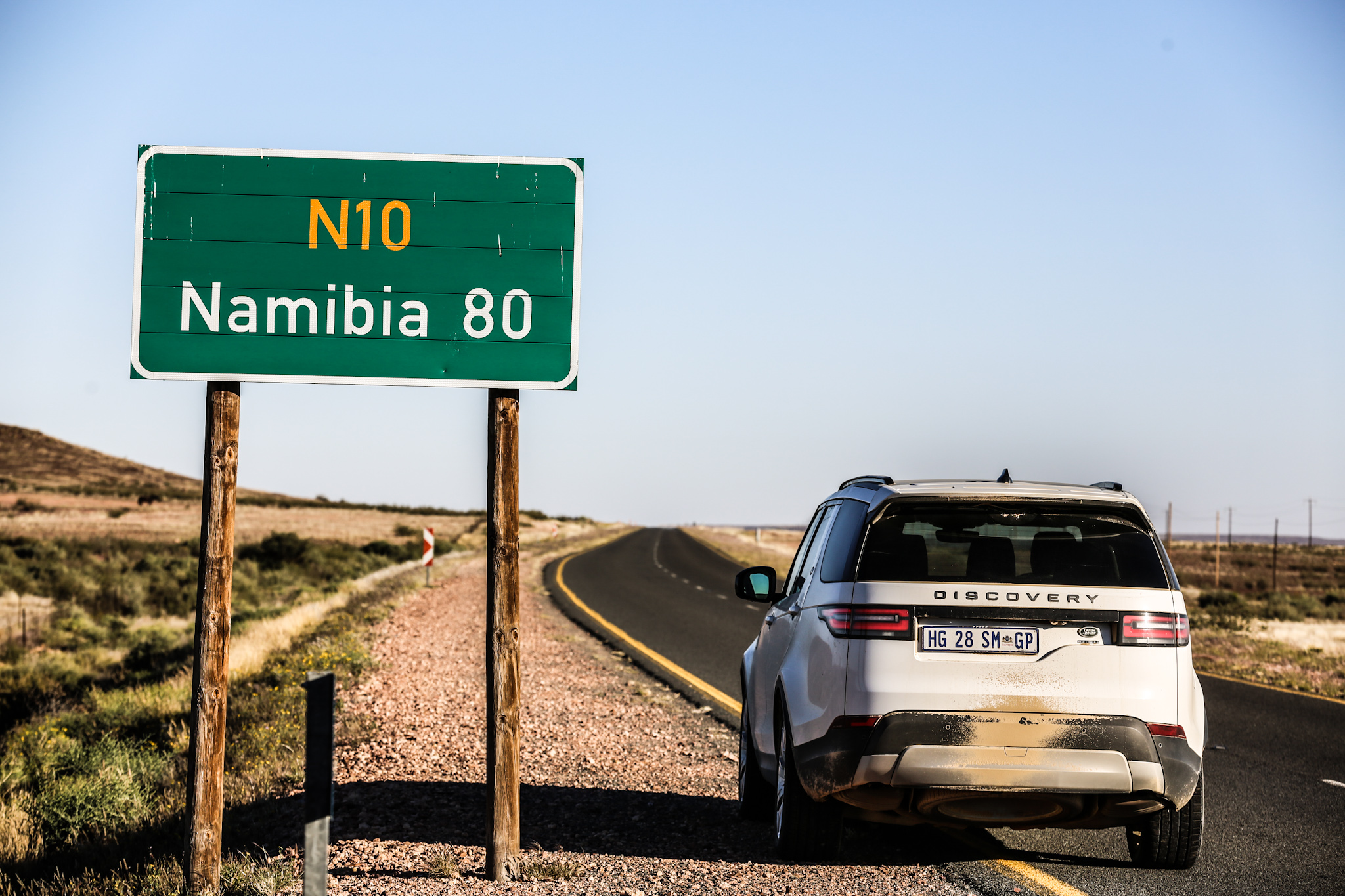 Efter ett tag var det som att vi körde runt på savannen och när Discoveryn sade att vi skulle svänga till vänster hindrades vår framfart av att vägen hade upphört och istället fann vi ett staket; denna gång utan grind. Vi hoppade ut för att undersöka och möttes av lukten av kadaver och såg ett får som hade blivit lönnmördat av någon vild afrikansk best. Vi hoppade illa kvickt in i bilen igen och körde tillbaka, genom den sydafrikanska familjens trädgård och tog den stora grusvägen norrut igen. Vi kände oss onekligen som sådana personer som råkar köra ner i havet för att de följde anvisningarna på GPS:en. Efter mycket om och men (och många grindar) anlände vi slutligen till den stora asfalterade vägen vilket kändes som övergången mellan att ha sovit i tält i 20 år för att sedan bosätta sig i Prinsessan Lilian-sviten på Grand Hôtel – även om Discoveryn är sanslöst bekväm. När jag fick täckning igen på min mobil informerade jag Land Rover om det punkterade däcket.