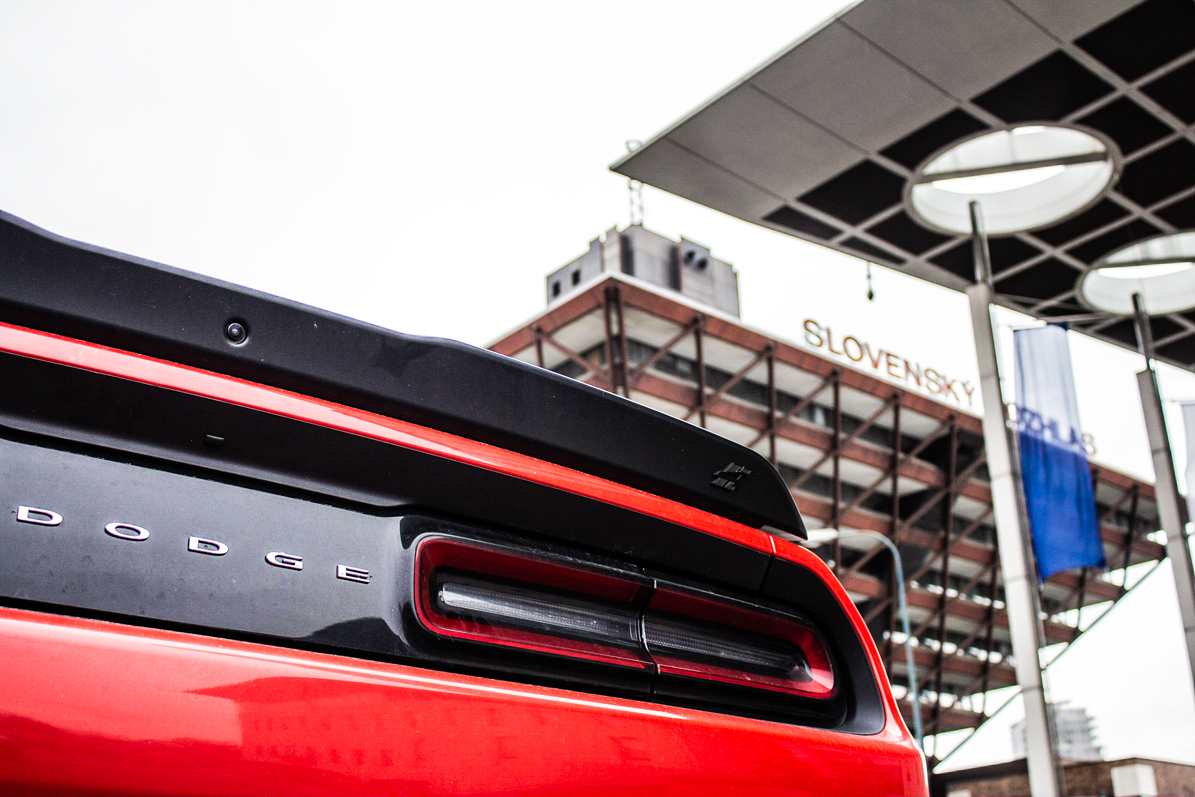 När man först går upp till en Challenger (i synnerhet vår illröda pressbil) har man omedelbart det första köpargumentet klart, bilen ser onekligen väldigt speciell ut. Stora hjulhus, motorhuv som sträcker sig längre än Brexit-förhandlingarna och en front som ser riktigt arg ut.