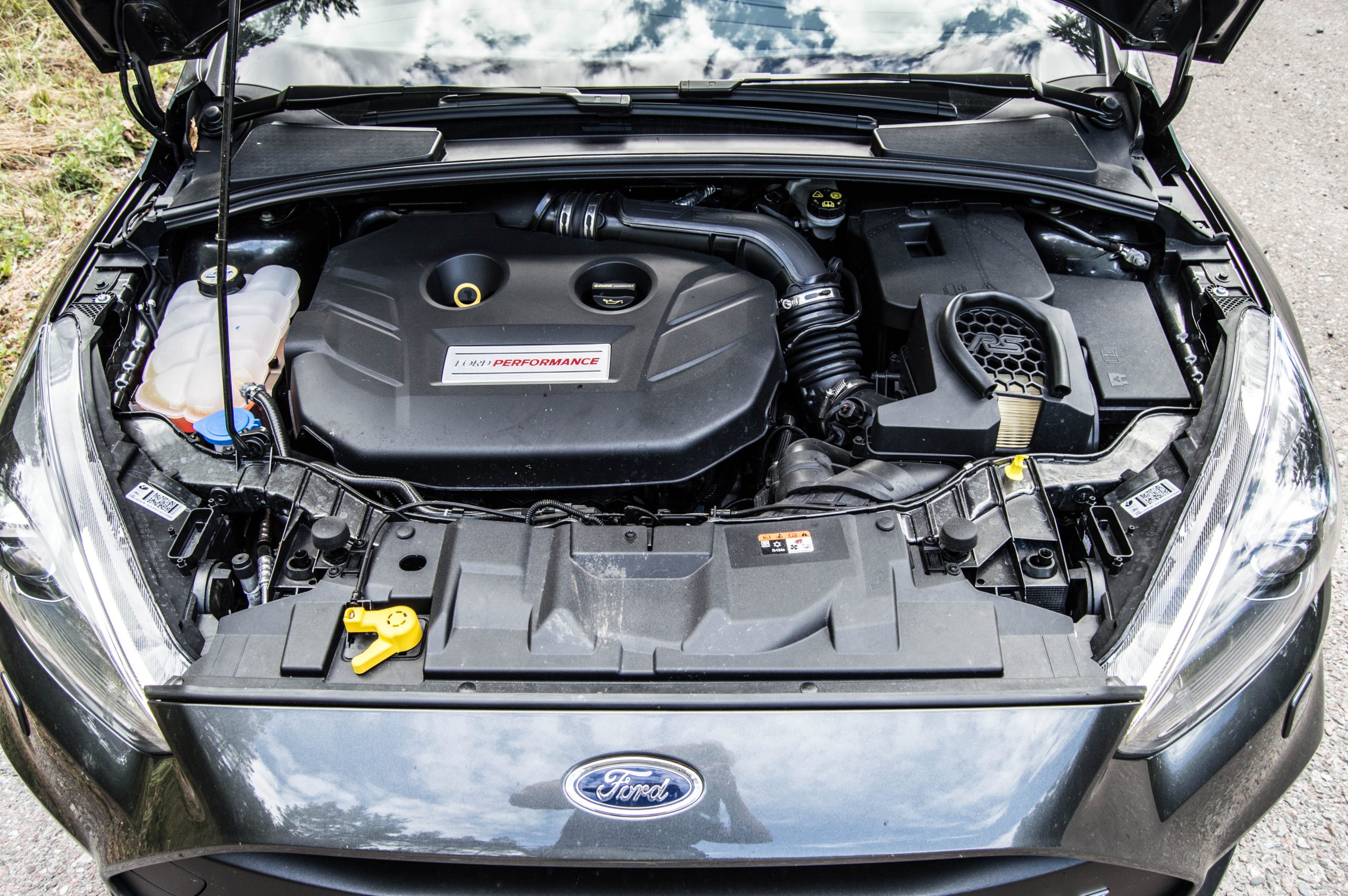 Om man inte är alert kan det ställa till med problem – Ford Focus RS är en bil som man måste ta i kragen. Gasen i botten resulterar i minimalt med fördröjning för att sedan övertas av 470 newtonmeter (overboost i 15 sekunder) som sedan leder till att de 350 hästkrafterna tar täten och håller i sig upp till varvstopp. Det är en motor som är livligare än en fyraåring som har hittat godisgömman. Givetvis är bilen knappast den mjukaste av ting, i race-läget är det som att ha en polermaskin fastklistrad i ryggen. Chassit lämnar dock alltid tillräckligt med utrymme för att man ska känna hur bilen rör sig och för sig i kurvorna, man hamnar i symbios med bilen.