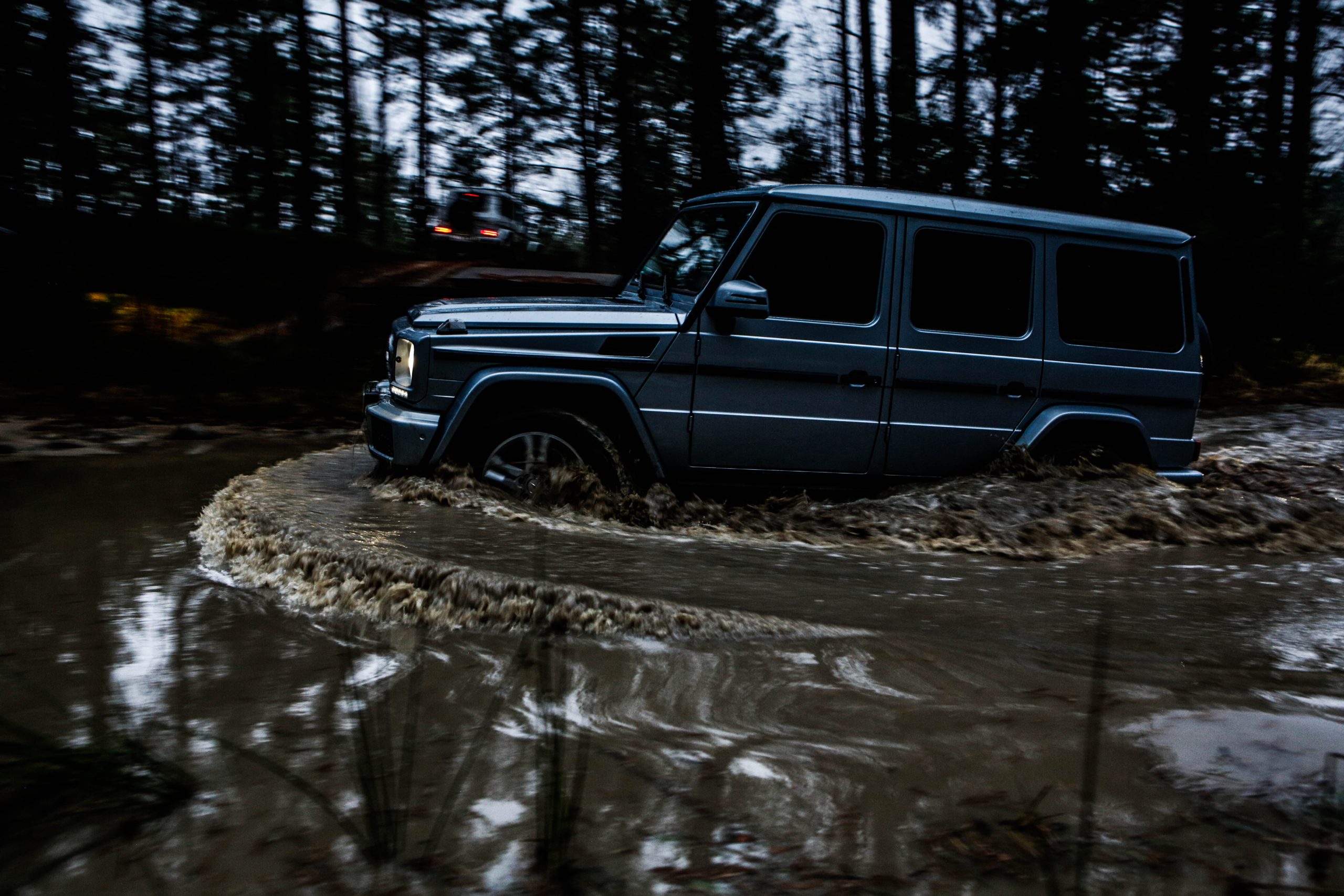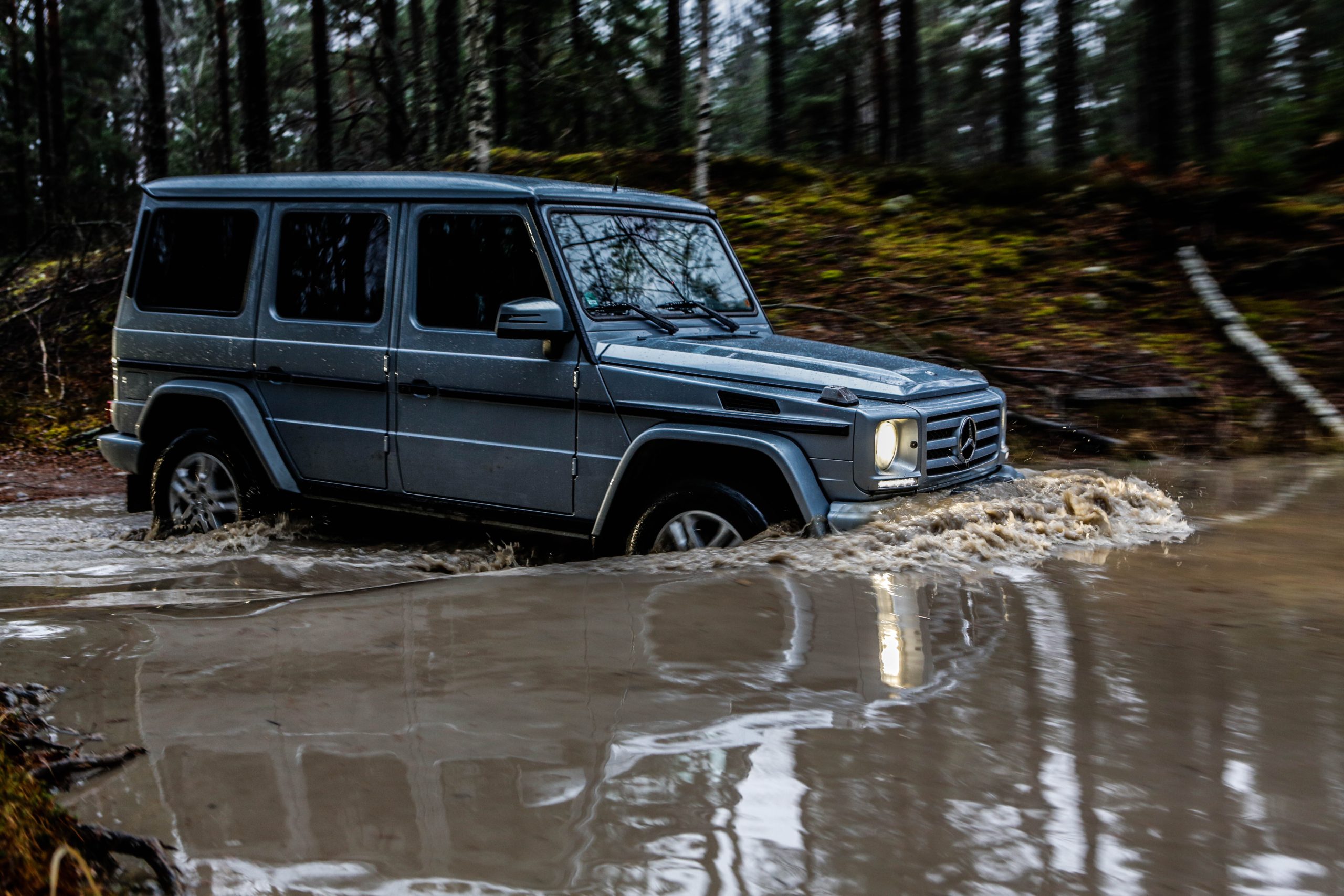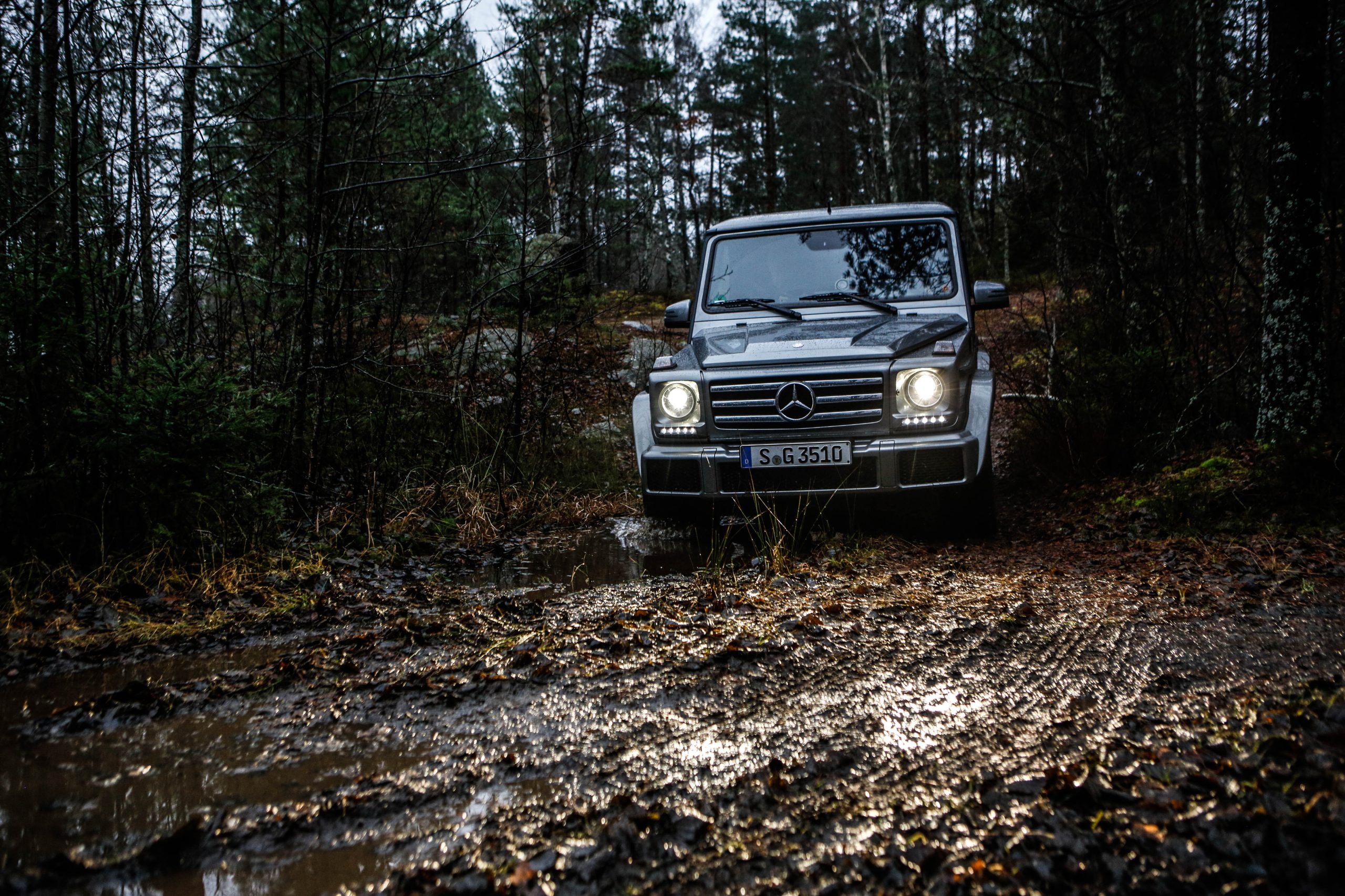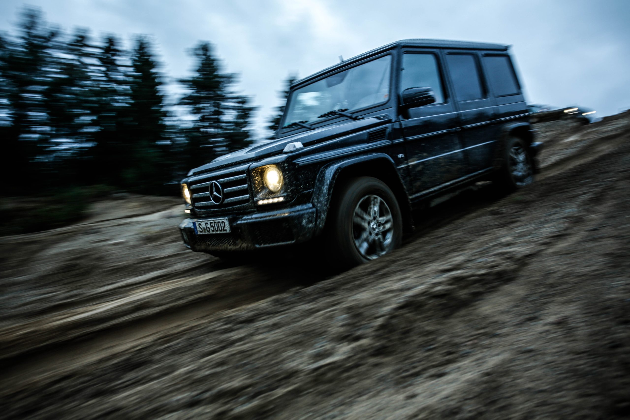 Den första bilen som vi fick köra var Mercedes-Benz G500 som med en 4.0-liters V8:a på 422 hästkrafter och 610 newtonmeter har mer än nog med prestanda för att bestiga både det ena och det andra. G-Klassen är en av ytterst få bilar som man kan få med en lågväxel och den enda i produktion med tre stycken låsbara differentialer; för gemene man handlar det om hur kraften fördelas för att optimera terrängkörning mer eller mindre. Det är första gången vi kör en G-Klass men som sagt inte första gången på Terrängcamp Ekeby där vi även kört Volkswagen Touareg och Porsche Cayenne. Att köra en G-Klass tillhör de absolut häftigaste man kan göra. Vi tyckte att Touaregen var extremt kapabel men en G-Klass får en Touareg att framstå som en gympalektion bredvid VM-finalen i fotboll. Sikten ut över den maffiga huven, kopplat med mullret från V8:an var en sensationell upplevelse. Att bilen lyckades bestiga branta och höga sandberg utan ett enda om och men var sannerligen bevis på dess militära anknytning. Den lyckades med saker som anses helt orimliga för en bil och gjorde det med en sådan extrem lätthet att man tvingades montera fast hakan efter varje tur.