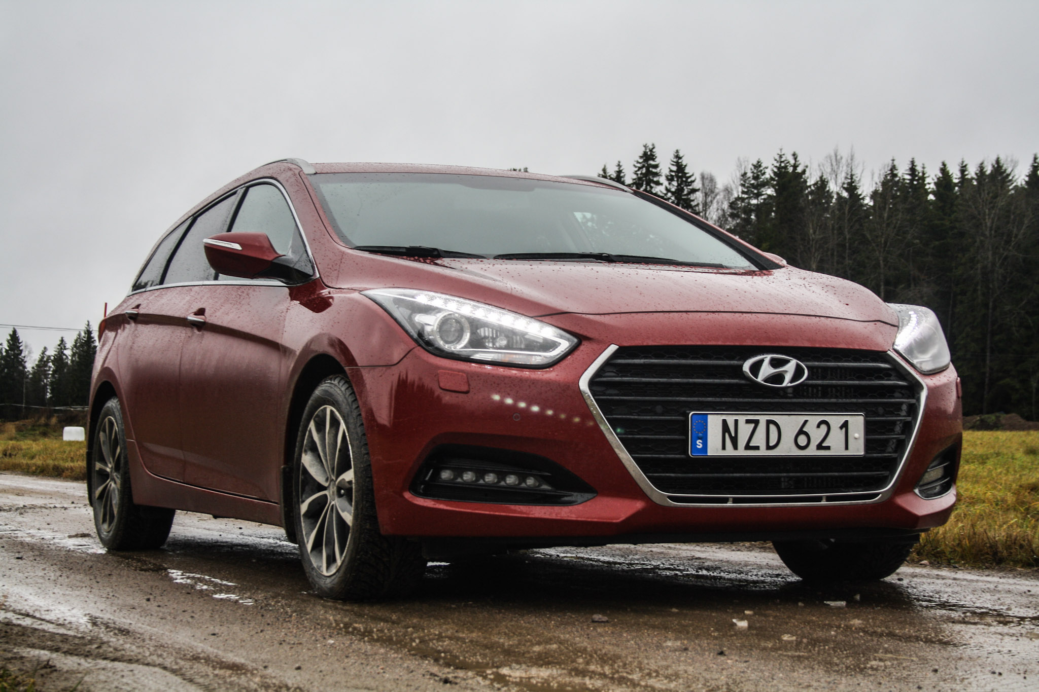Under huven på testbilen hittar vi en förvånansvärt lekfull diesel-fyra på 141 hästkrafter. Ljudet som motorn ger ifrån sig påminner nästan om en pigg bensinare, vilket även är känslan bakom ratten. Varvtalen avverkas jämnt och smidigt, accelerationen känns snabbare än den faktiskt är. Dessutom tycks motorn inte behöva något bränsle alls – under vår vecka med bilen snittade vi 0,57 liter per mil. I testbilen kombinerades motorn med en 7-stegad dubbelkopplingslåda, en galet prisvärd manick som starkt rekommenderas. Växellådan är inte lika raffinerad som exempelvis BMW:s motsvarighet, men med tanke på priset är den ett ovanligt bra kap. Allt som allt levererar Hyundai i40 en minst sagt förbluffande mängd körglädje.