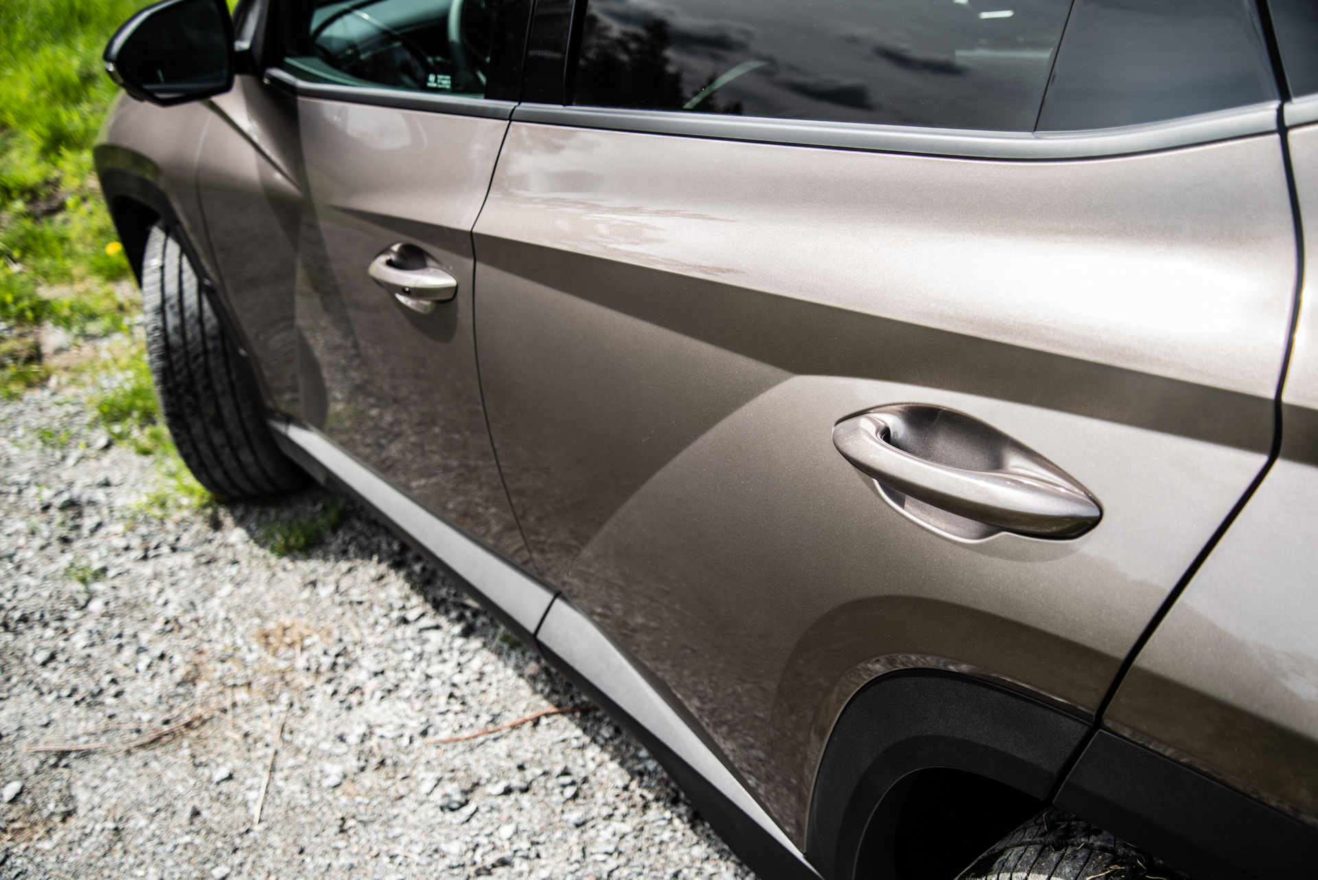 Precis som sina elektrifierade och icke-elektrifierade syskon har laddhybridsvarianten en exteriör som heter duga och det origami-inspirerade utseendet är synnerligen tilltalande i den uppsjö av kliniskt designade bilar som finns på marknaden. Det enda som skiljer i utseende mellan en ordinarie Tucson och denna PHEV-variant är laddluckan.