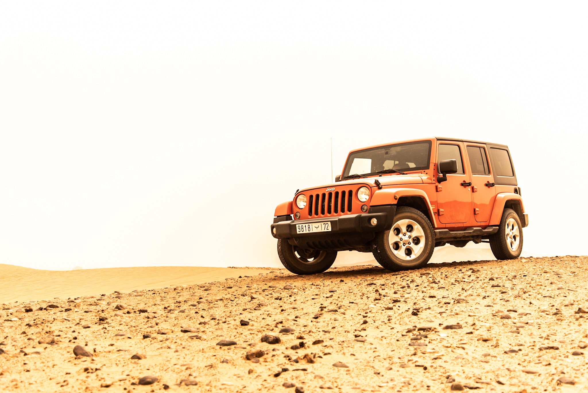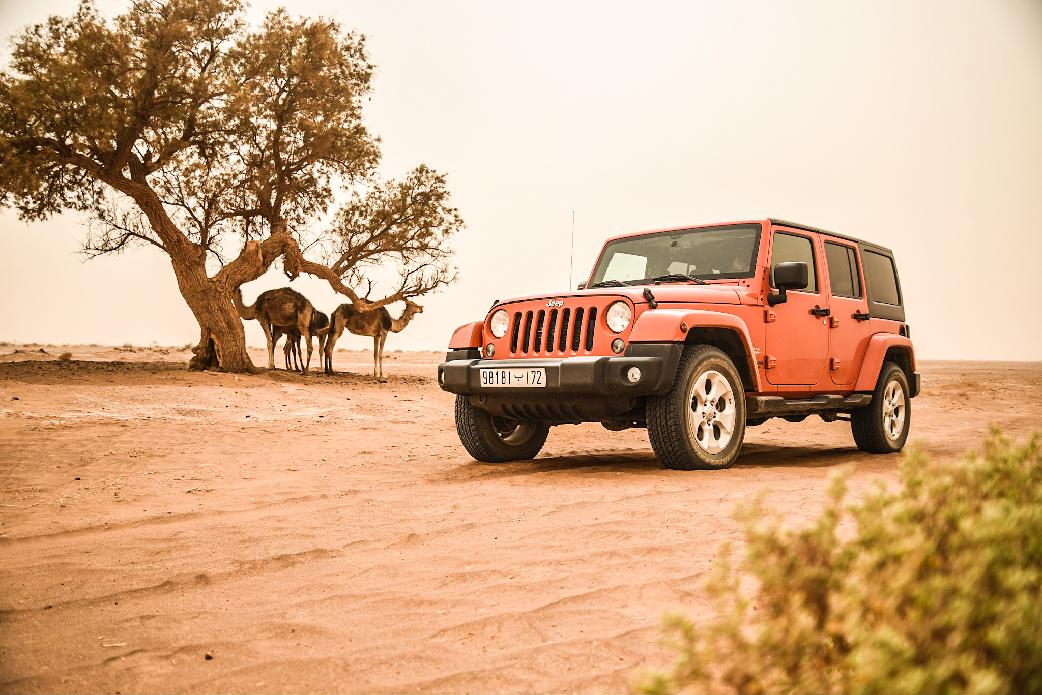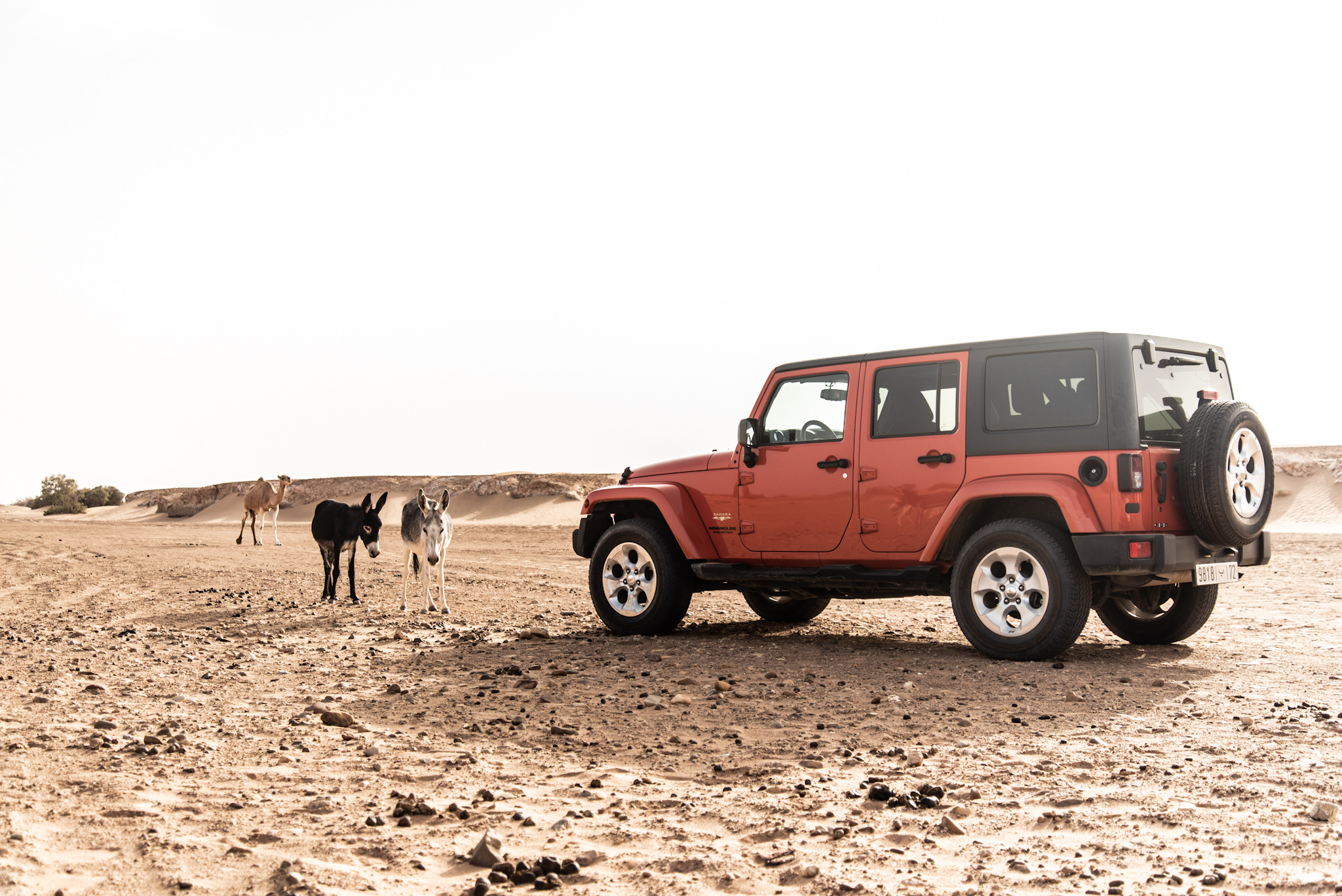 ”Det enda man ser här ute är kameler och Toyotor” konstaterade vår guide Ali, en före detta nomad som hade bytt ut Sahara mot staden för inte så många år sedan – ”det finns inga bra skolor i Sahara”. Jag var benägen att tro honom. Vi hade valt Saharaöknen i juli månad som testplats av den utgående modellen Jeep Wrangler. Efter att ha imponerats av den nya generationen i Österrike kändes det lägligt att se vad föregångaren, som var aktuell i nästan ett decennium, hade att erbjuda. Det är en bil vi aldrig tidigare hade fått möjlighet att köra. Låt oss ta reda på om den lyckas imponera på en nomad genom att lägga i Högsta Växeln och åka på roadtrip i Marocko.