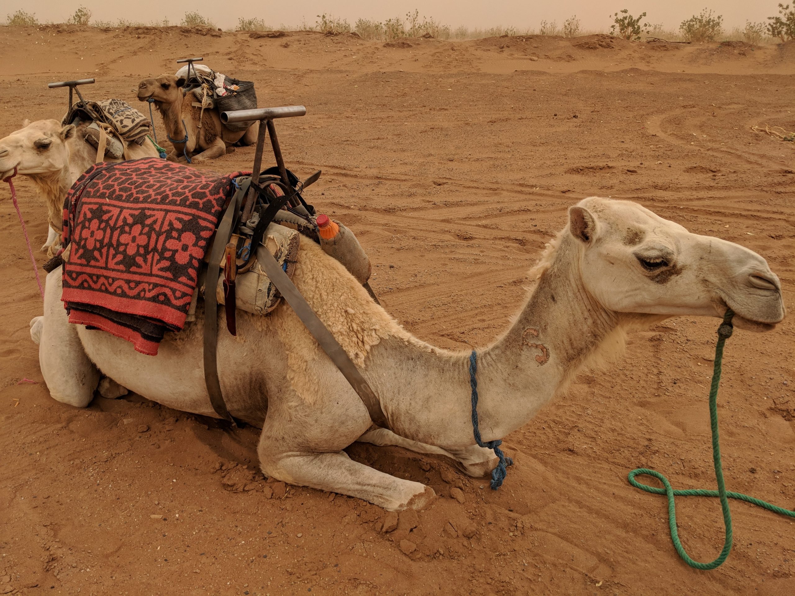 Efter Casablanca var det Marrakech som stod på turlistan. Trafiken här fick Casablancas trafik att verka nästintill timid och mopeder delade plats med fotgängare i stadens trånga gränder. Efter att ha tillbringat en hel arbetsdag med att pruta till mig massa onödigheter, undvikit mopeder som pistolkulor, samt införskaffat en lämplig utstyrsel för öknen var det dags att bege sig till M’Hamid, Marockos port till Sahara. När vi lämnade Marrakech tidigt på morgonen var det ändå rimliga 32 grader. Ju närmre vi kom M’Hamid, desto mer klättrade temperaturen. När vi parkerade utanför hotellet där vi skulle möta vår guide var det hisnande 47 grader. Det var alltså temperaturen i skuggan – att vara i solen var som att slunga sig över en maj-brasa.