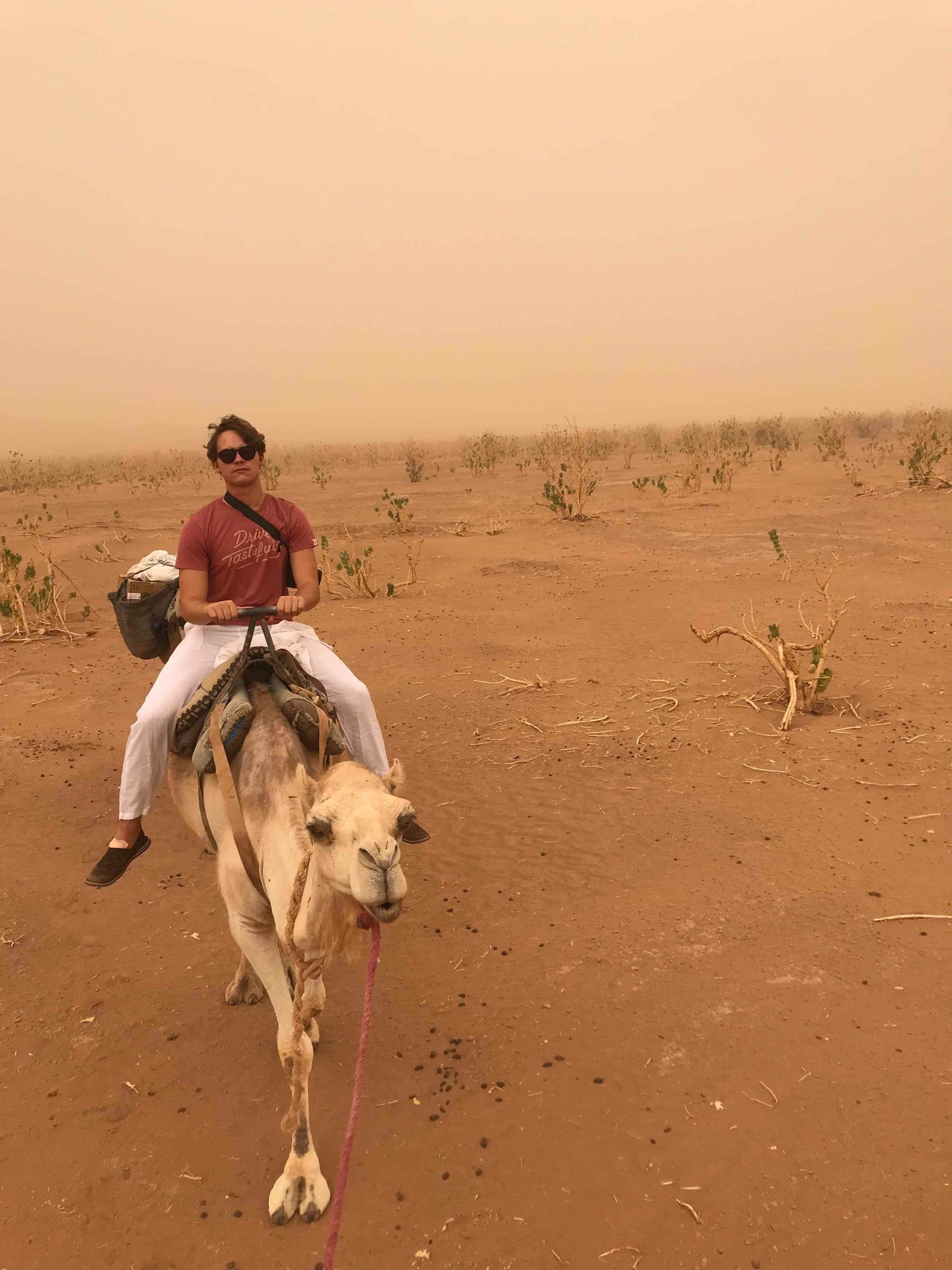 Det sägs att det är kallt i öknen på natten. Det är en lögn. Jag sov i 42 graders värme i en pyjamas (för att skydda mig mot alla kryp) vilket kändes som att lägga sig och sova i en vattenkokare. Efter frukost var det dags för att åka kamel – jag tänkte att jag kunde jämföra Wranglern med något mer inhemskt. Det var det största misstag jag har begått i mitt 22-åriga liv. Kamelfärden tog oss två timmar ut i ingenstans och var det mest obekväma jag någonsin fått erfara. Till råga på allt gick det så förbannat långsamt och jag tröstade mig med att jag var motorjournalist och inte kameljournalist.