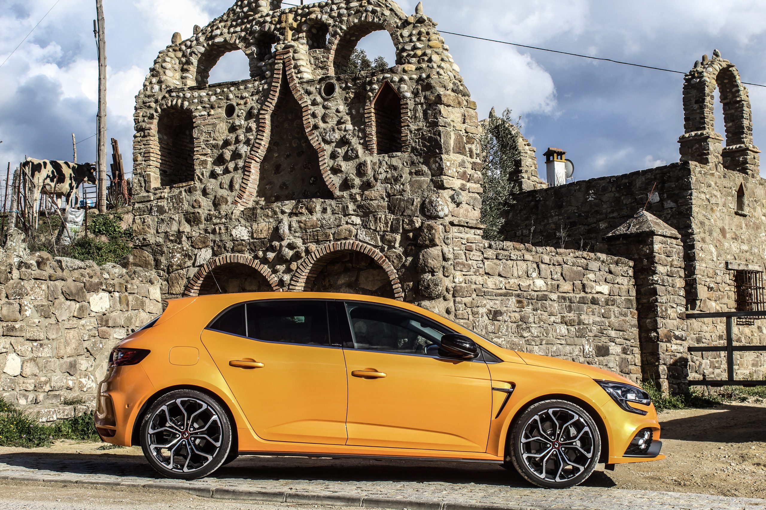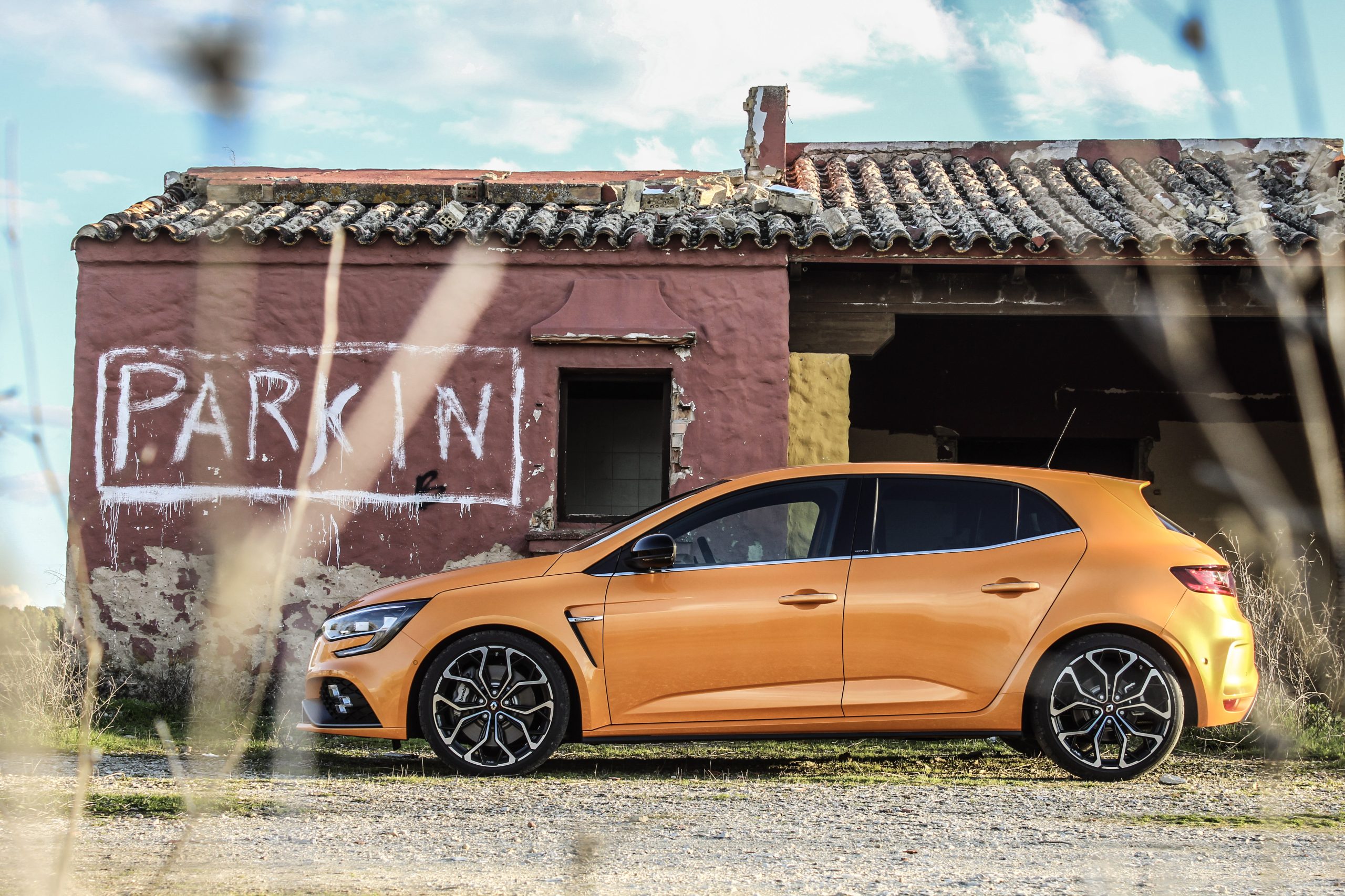 Det är inte svårt att skilja en Megane RS från en vanlig Megane. Förutom att den gul-orangea lanseringsfärgen lyser lika starkt som den spanska eftermiddagssolen är det en hel del exteriördetaljer som avslöjar att man sitter i en bil av det sportigare slaget. Den är både bredare och lägre än Megane GT. Svartfärgade detaljer, racingflaggor som dimljus, större insug, kolossala fälgar och ett mittmonterat utblås ger bilen en tämligen aggressiv look. Jag märker att modellen drar åt sig blickar när jag rullar genom de spanska småbyarna och tänker att det inte är särskilt konstigt. Jag tycker nämligen att bilen är snygg i RS-utförande, särskilt iklädd den apelsinliknande kulören.