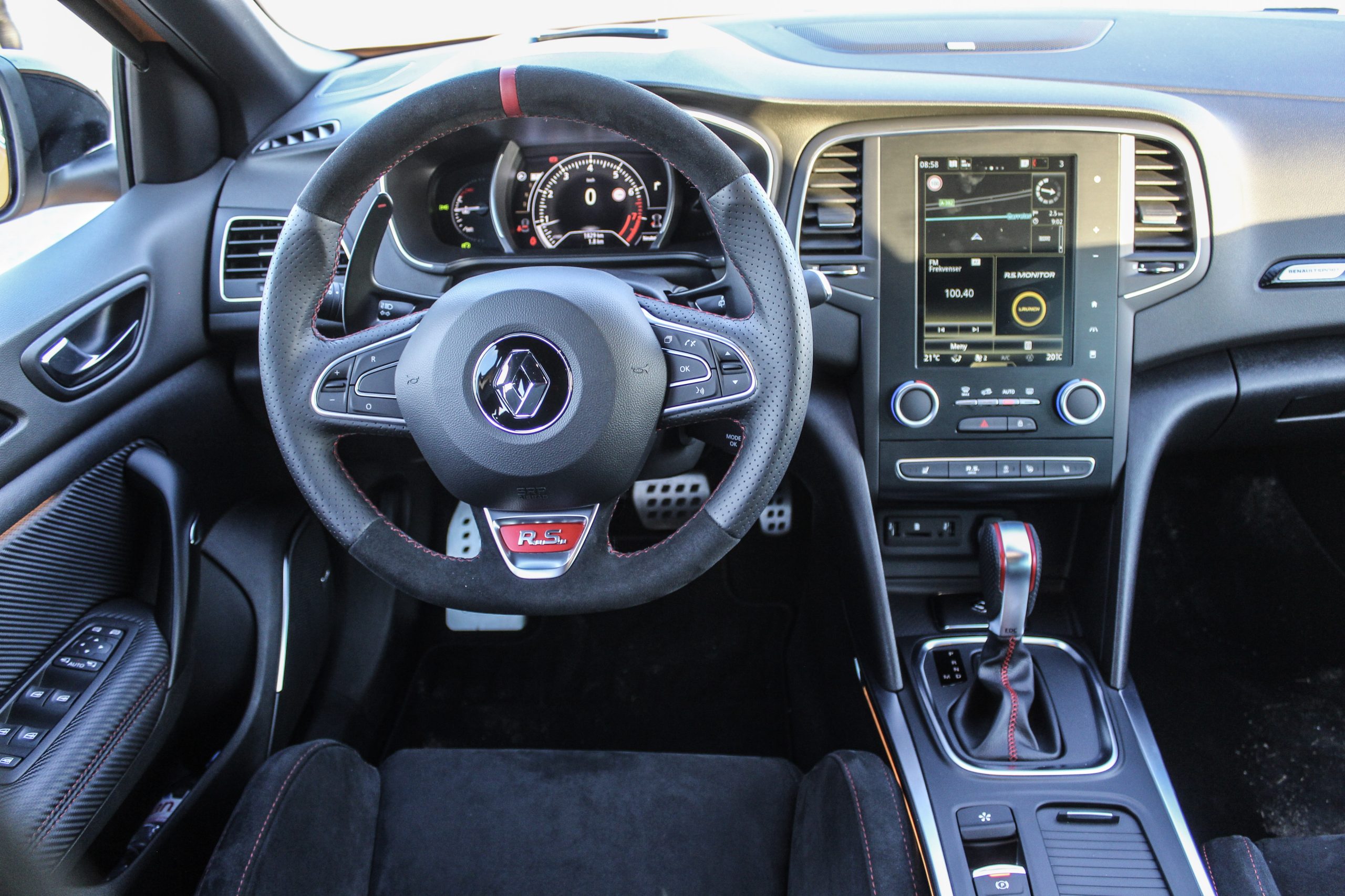 Det går att välja på ett antal olika körlägen som sträcker sig från ett pensionärsanpassat komfortläge till ett klart råare racingläge. I komfortläget förvandlas Megane RS till en förvånansvärt lugn och sansad bil. Stolarna är skålformade och har rejäla sidostöd men påminner inte om att sätta sig på en stubbe i skogen. Tillsammans med de nya stötdämparna är Megane RS en bil jag skulle kunna tänka mig att använda dagligen utan behovet av att teckna en extra ryggradsförsäkring.