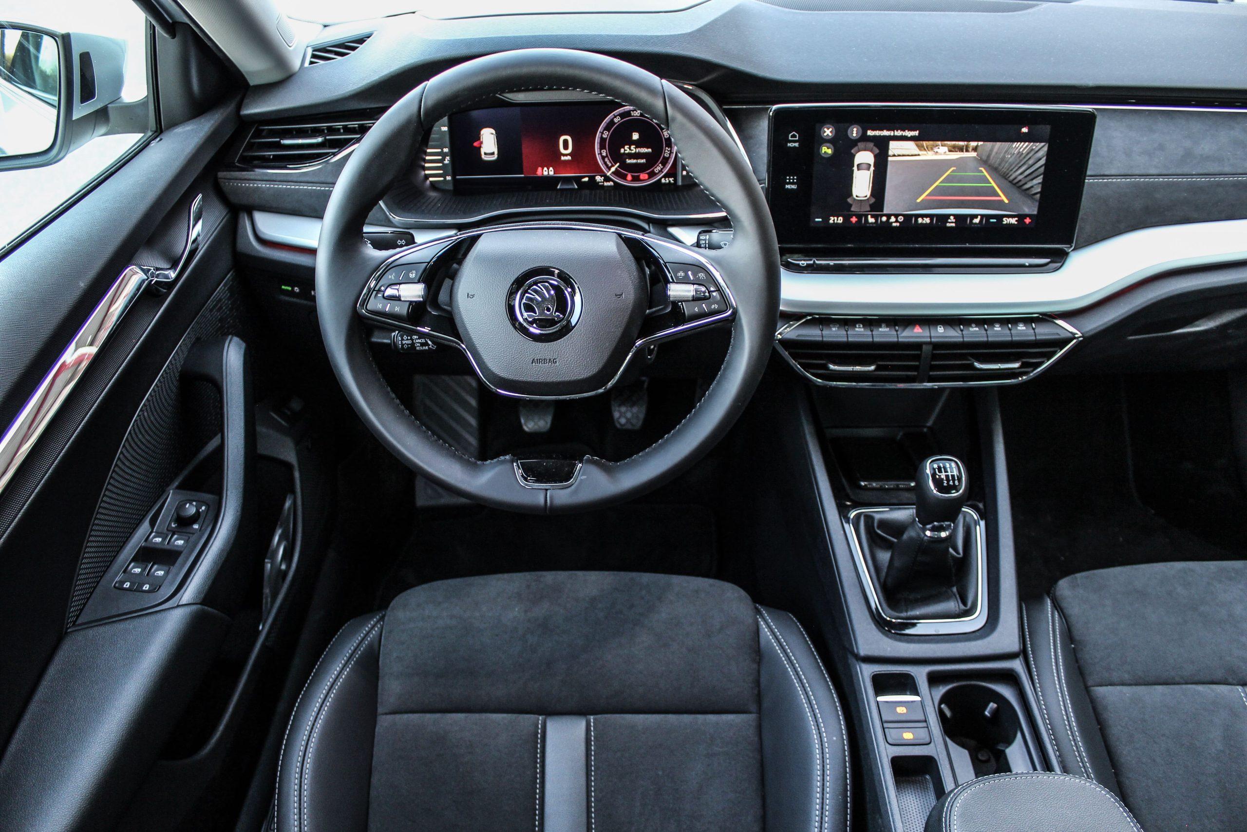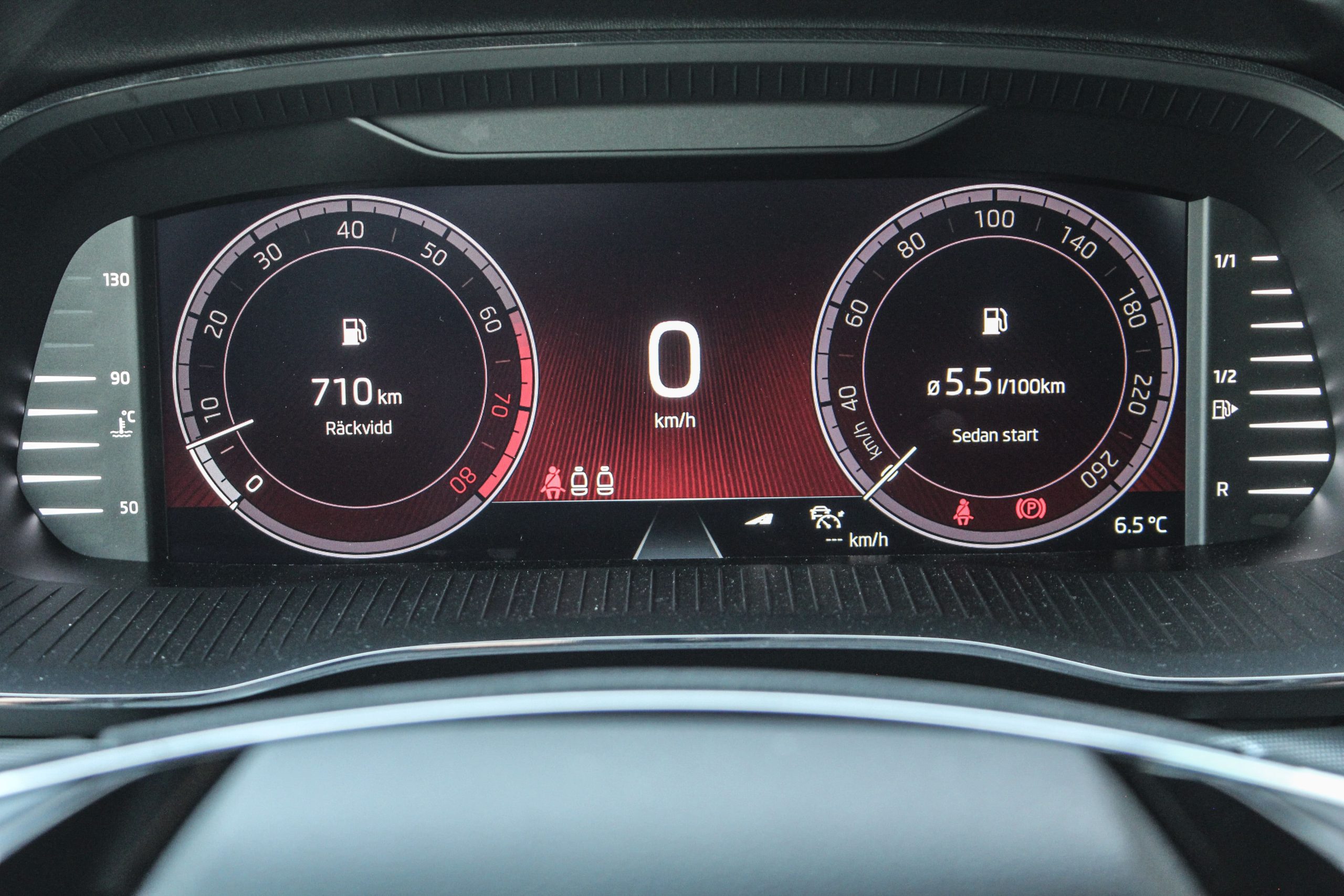Vi valde en bil med den 150 hästkrafter starka 1,5-liters bensinmotorn och sexväxlad manuell växellåda. Det första som märks är hur tyst den är. Bensinmotorn ger ifrån sig mindre ljud än en tassande katt och även i högre hastigheter är vägljudet relativt dämpat. Škoda har lagt krut på att få till en bekväm, snarare än sportig upplevelse bakom ratten och det uppskattas. Den beter sig exakt som man förväntar sig att den ska göra, körupplevelsen är mogen och bilen är lätthanterlig i alla situationer. Testbilen var utrustad med det adaptiva chassit som innebär att man kan välja mellan tre olika lägen; komfort, normal och sport. Ett briljant tillval som fungerar ypperligt och där man verkligen känner skillnad mellan de olika lägena.