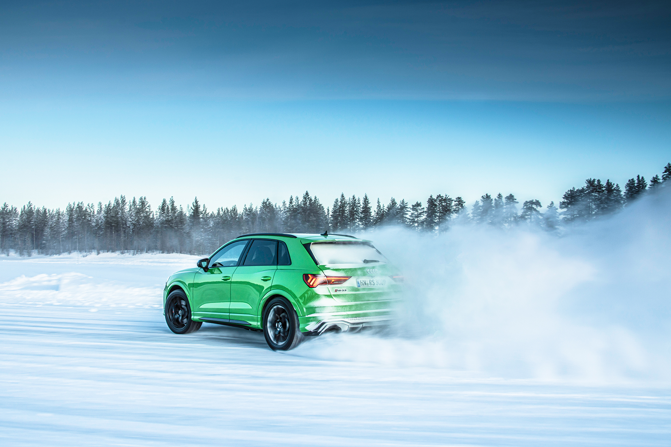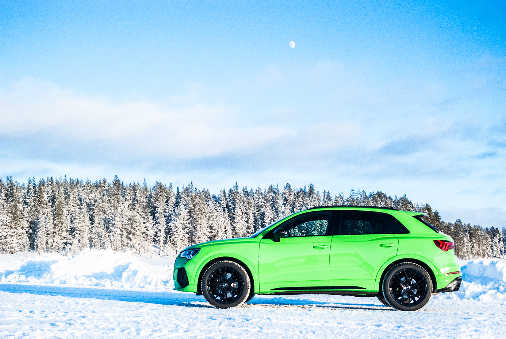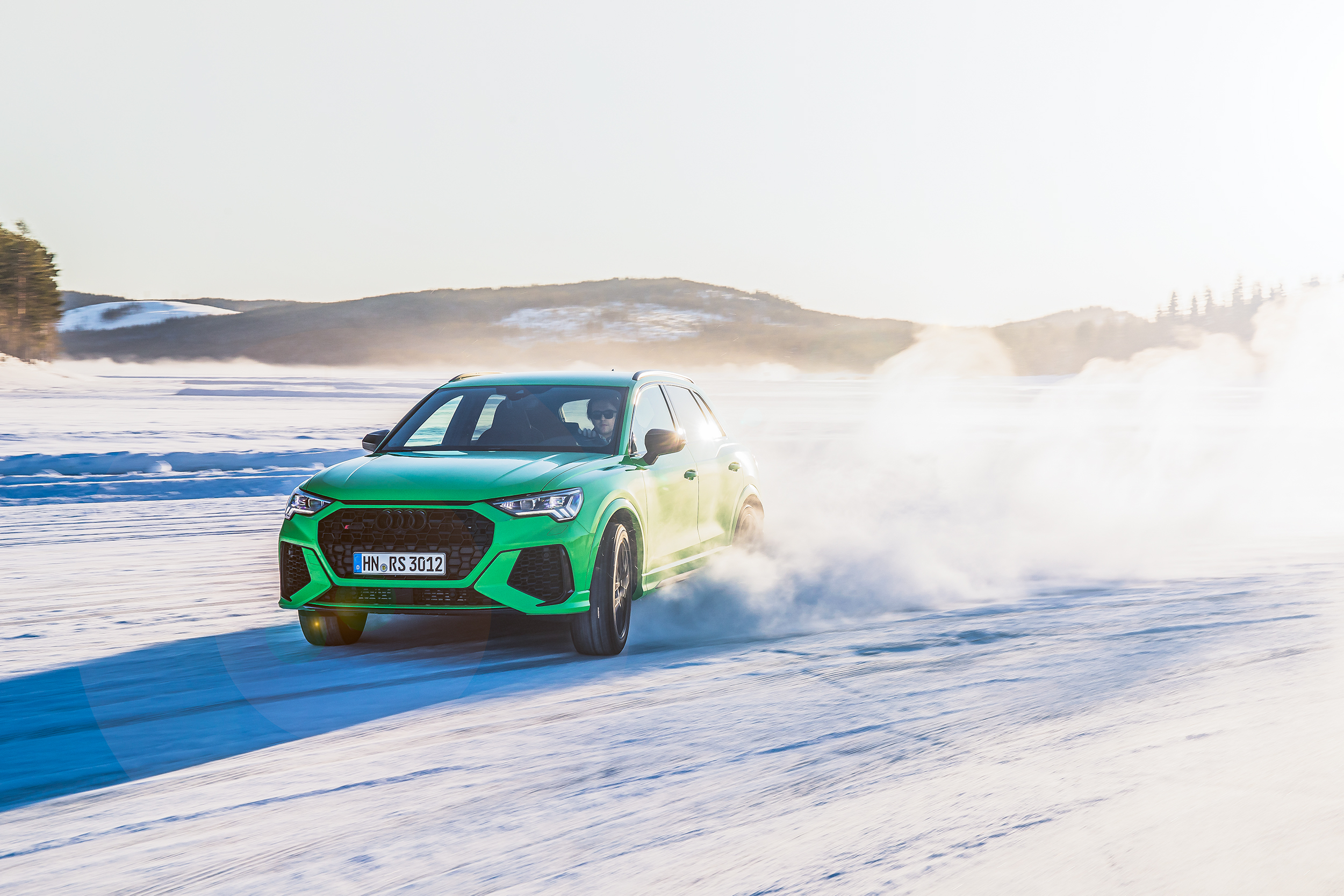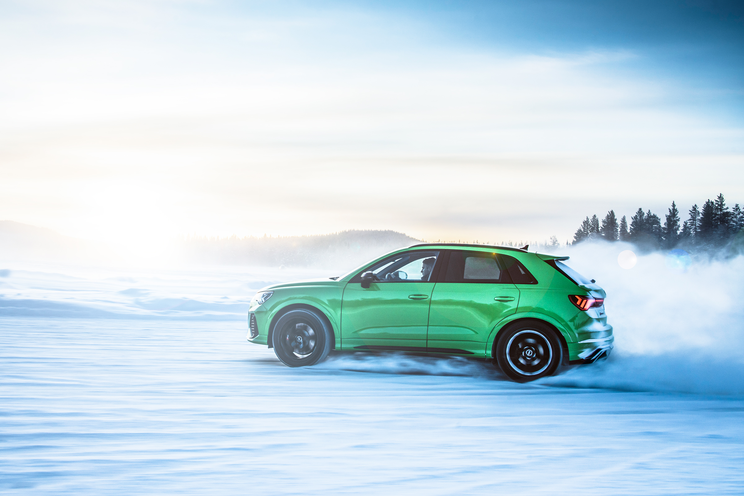 Denna vinter har man för snö varit tvungen att resa norrut, vilket jag gjort tre gånger. Första gången hem till Sundsvall för att fira jul och andra gången lite längre upp, till Umeå, för att prova vinterdäck. Allra senast blev det ännu lite närmre polcirkeln. Då åkte jag nämligen upp till den för bilindustrin så viktiga orten Arvidsjaur, för att provköra helt nya Audi RS Q3. Har Audi Sport-gänget fått den bevisligen praktiska Q3 att kunna tilltala den högra hjärnhalvan, eller tycks den förbli bilvärldens svar på en sko från Ecco? Det korta svaret på frågan är att de lyckats, men att man som köpare fortfarande ska fundera noga på vad man är ute efter. Jag ska förklara vad jag menar.