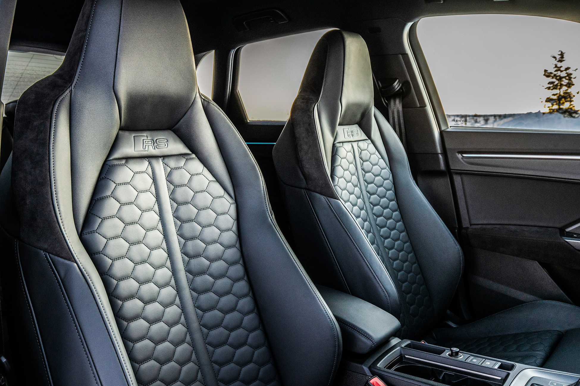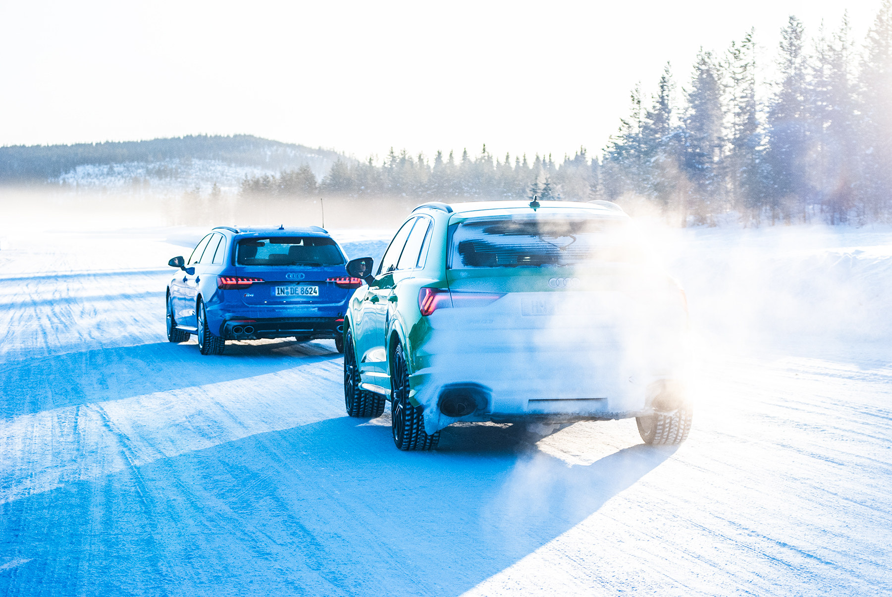 Eftersom jag var i Arvidsjaur, och jaur är en försvenskad form av det samiska ordet för sjö, var det så klart också tvunget att sladda omkring på en frusen sådan. Med antisladd avstängt och de, för dynamisk körning, mest förmånliga inställningarna färdigkonfigurerade i ett av de två RS-lägena (som nås via ratten) visade det sig oerhört lätt att få bilen att dansa fram som en sann isprinsessa. Fyrhjulsdriften är nämligen konfigurerad för att hjälpa en att vrida runt bilen om den märker att man försöker ta sig igenom en skarp kurva, och jag – med min ungdomliga entusiasm, som en av Audis representanter milt uttryckte det – fick inledningsvis lägga band på mig för att inte se mig omkörd av bakvagnen.