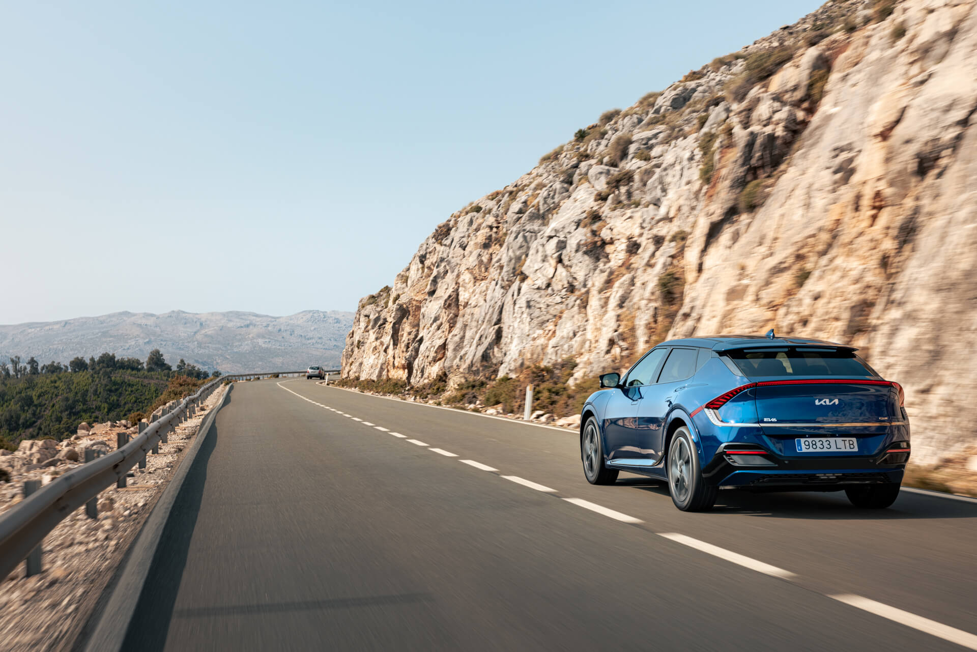 Elbilar tenderar att vara knäpptysta men EV6 är knäpptystare. Vindljud existerar knappt – inte ens i motorvägshastighet. Fjädringen är relativt hårt inställd och vill inte riktigt samarbeta över mindre ojämnheter i vägen. Det fungerar fint på sydeuropeiska silkeslena vägar men det återstår att se hur den beter sig på svenska osthålsvägar. Något som fjädringen har gynnat är dock väghållningen.