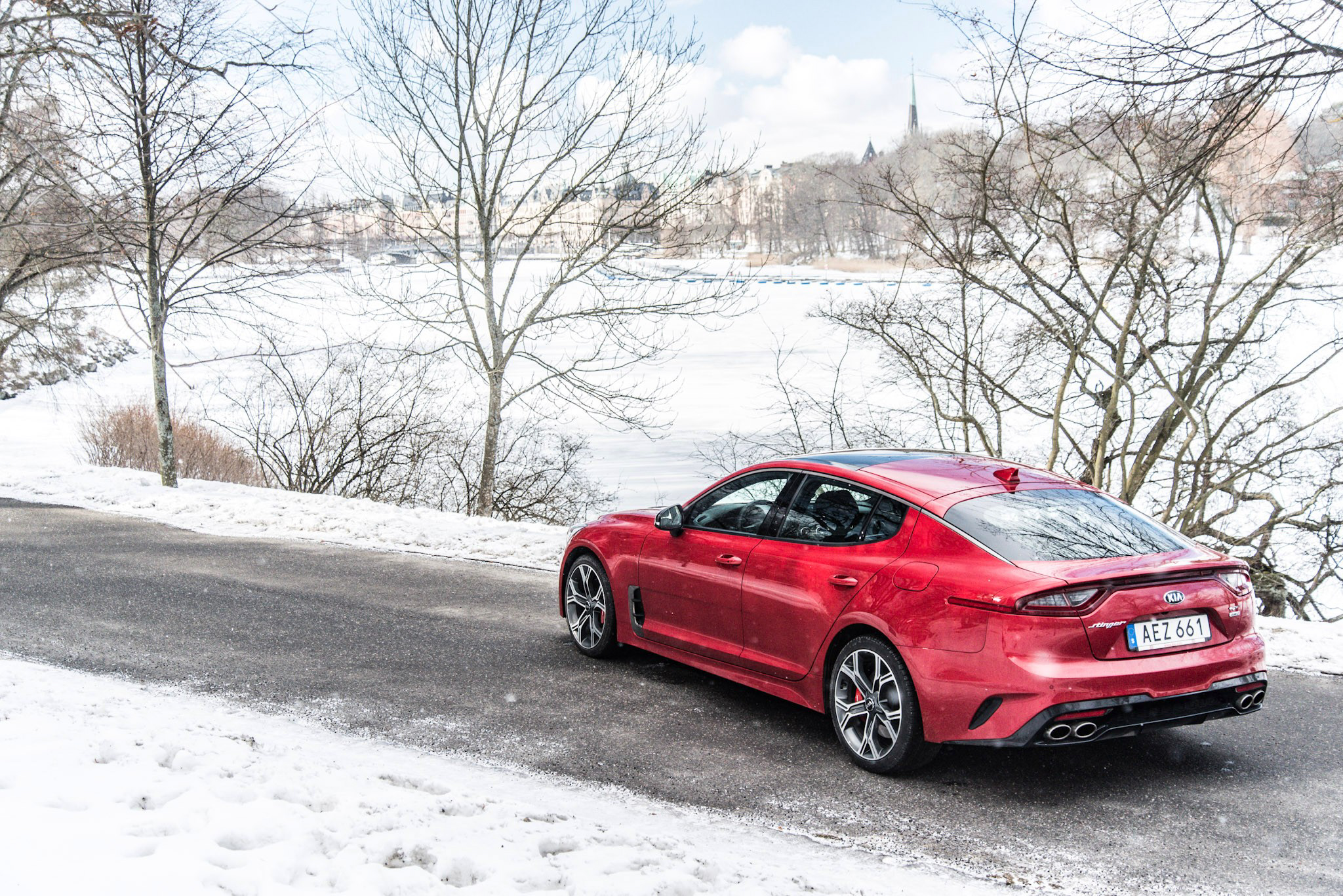 Det allra viktigaste är dock naturligtvis hur Stinger GT är att köra. 370 hästar under huven innebär mycket god acceleration, men växellådan kan ibland vara lite väl tråkigt inställd när det kommer till nedväxlingar. Detsamma gäller för gasresponsen som kräver att man egentligen trycker plattan i mattan för att man ska inse att bilen faktiskt är genuint snabb. Då blir man naturligtvis lockad att lägga i sportläget, som är mycket bättre lämpat för en bil av denna typ. Stinger går som på räls på kurviga landsvägar, och det är också där den trivs allra bäst. Det rör sig dock inte om någon sportbil, den är trots allt lika lång som en Porsche Cayenne.