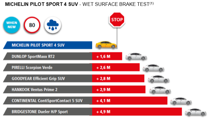 Nej, den som köper ett premiumdäck som detta är snarare ute efter säkerhet och trygghet i vardagen, och det är inom dessa områden som PS4 presterar bäst. Det är alltid vanskligt att ge sig iväg på däck-lanseringar som dessa när det kommer till att samla in siffror, så istället för att låta oss göra det själva hade Michelin låtit en tredje part göra det på förhand åt oss. Nedan presenteras nu dessa siffror, men du som läsare bör här lägga märke till att några viktiga punkter utelämnades i materialet som vi tagit del av. Bland annat redovisas inte ljudnivå och accelerationssiffror.