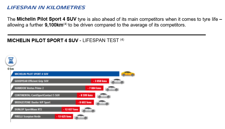 Michelin PS4 har även längst livslängd av alla sina konkurrenter, vilket är sparsamt för såväl miljö som plånbok. Företagets experter pratade gärna och mycket om det faktum att däcket inte heller blir så sämre i takt med slitage som man skulle kunna tro.
