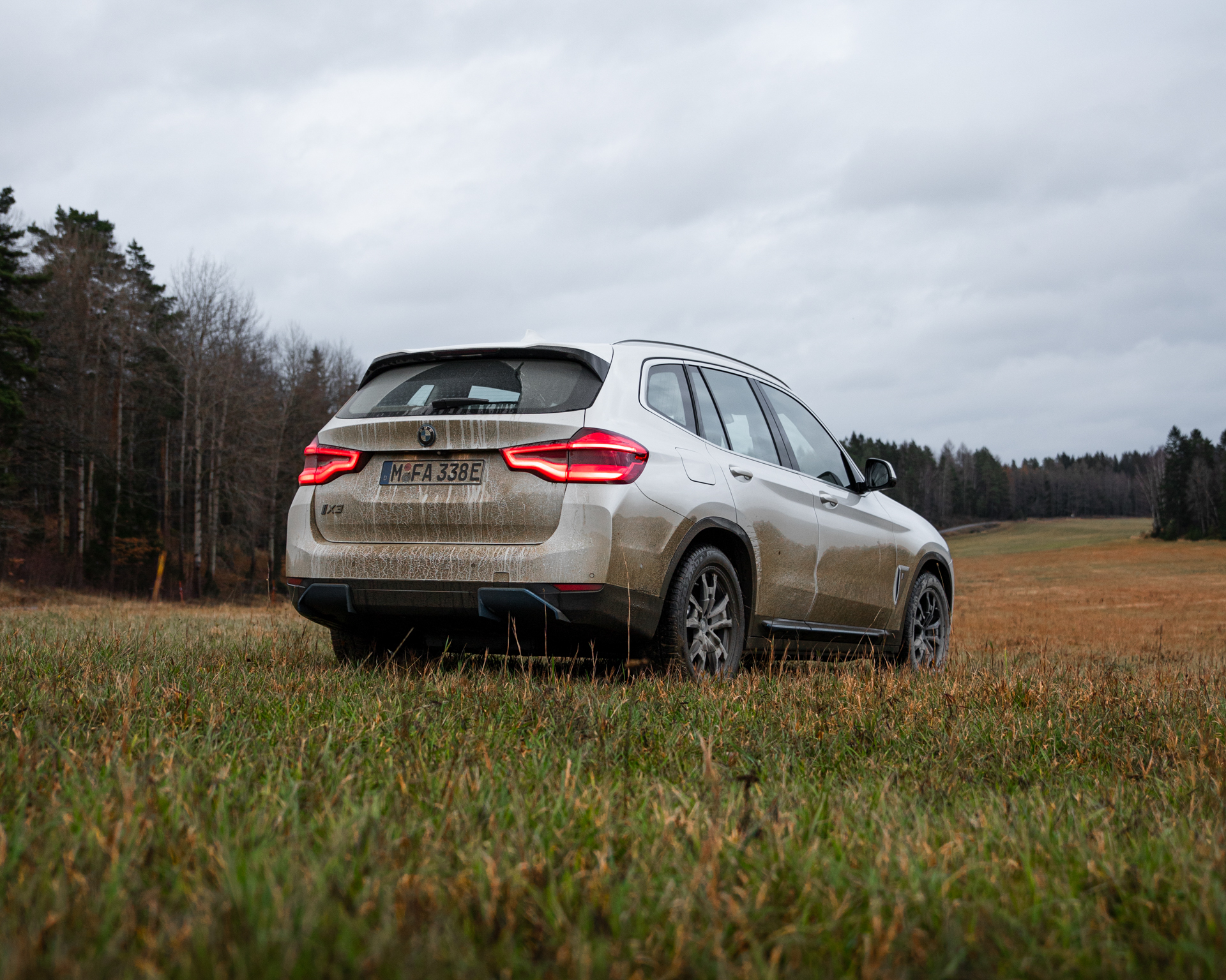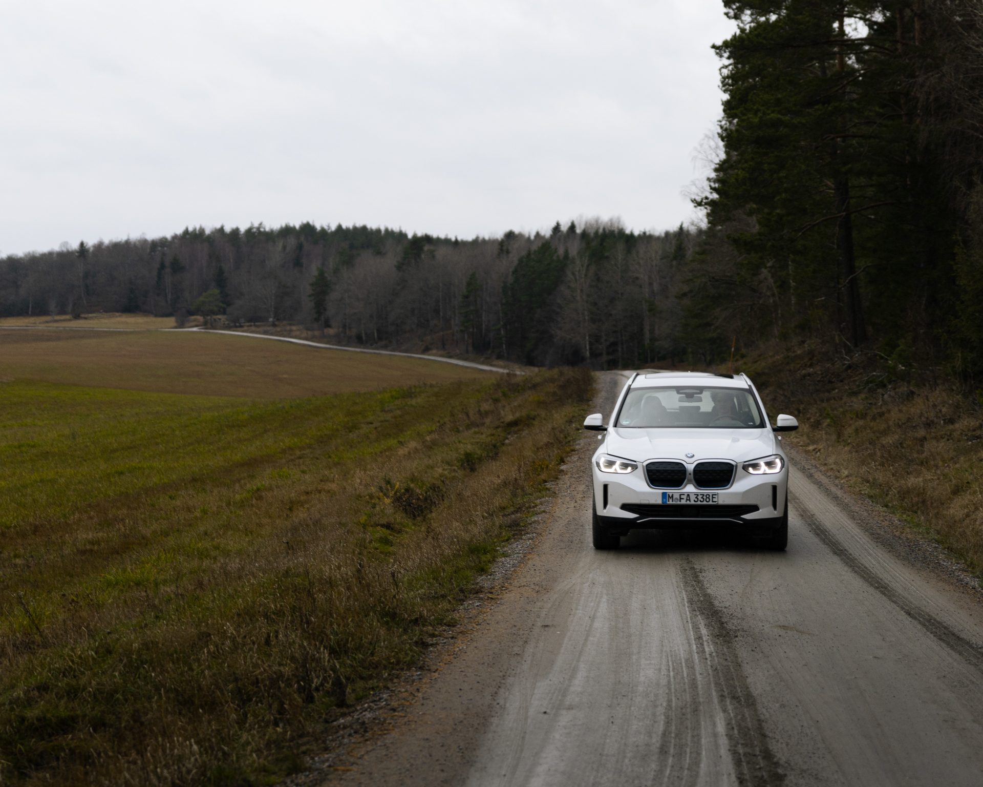 Batterierna är placerade långt ner i bilen vilket resulterar i en relativt låg tyngdpunkt. På landsväg är därför iX3 förvånansvärt kompetent och tar sig genom kurvor helt platt. Styrningen saknar dock feedback och hela upplevelsen känns tämligen syntetisk. Räckvidden är drygt 45 mil om man kör som om gammelmormor sitter bredvid med en varm skål soppa men man kommer ungefär 38 mil om man kör i takt med trafiken. På motorväg är bilen tyst och bekväm. iX3 går även att snabbladda och batterierna inkräktar heller inte på utrymmena i bilen, men minskar markfrigången.