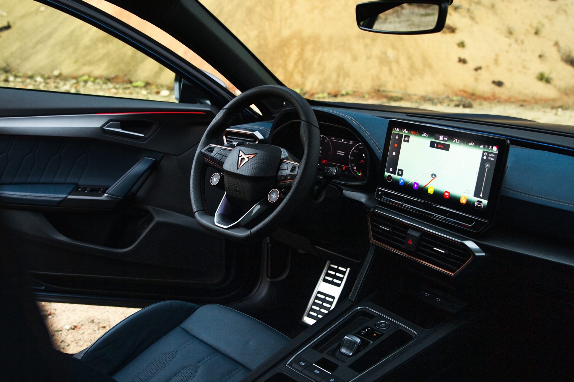 Resultatet i Formentors fall är en körupplevelse som påminner mycket om koncernsyskonet Volkswagen T-Roc R. Bilen är genuint snabb och växellådan svarar (för det mesta) snabbt. Fyrhjulsdriftssystemet är skickligt när det kommer till att fördela kraften och man känner hur det delegerar ut kraften där det behövs. Vår provkörning begränsades av det faktum att det var 14 grader varmt och bilen var försedd med vintersulor. Det inkräktade på greppet och däcken kändes väldigt mjuka. Med det sagt gick det ändå att pinna på bra utan att Formentorn hade invändningar.