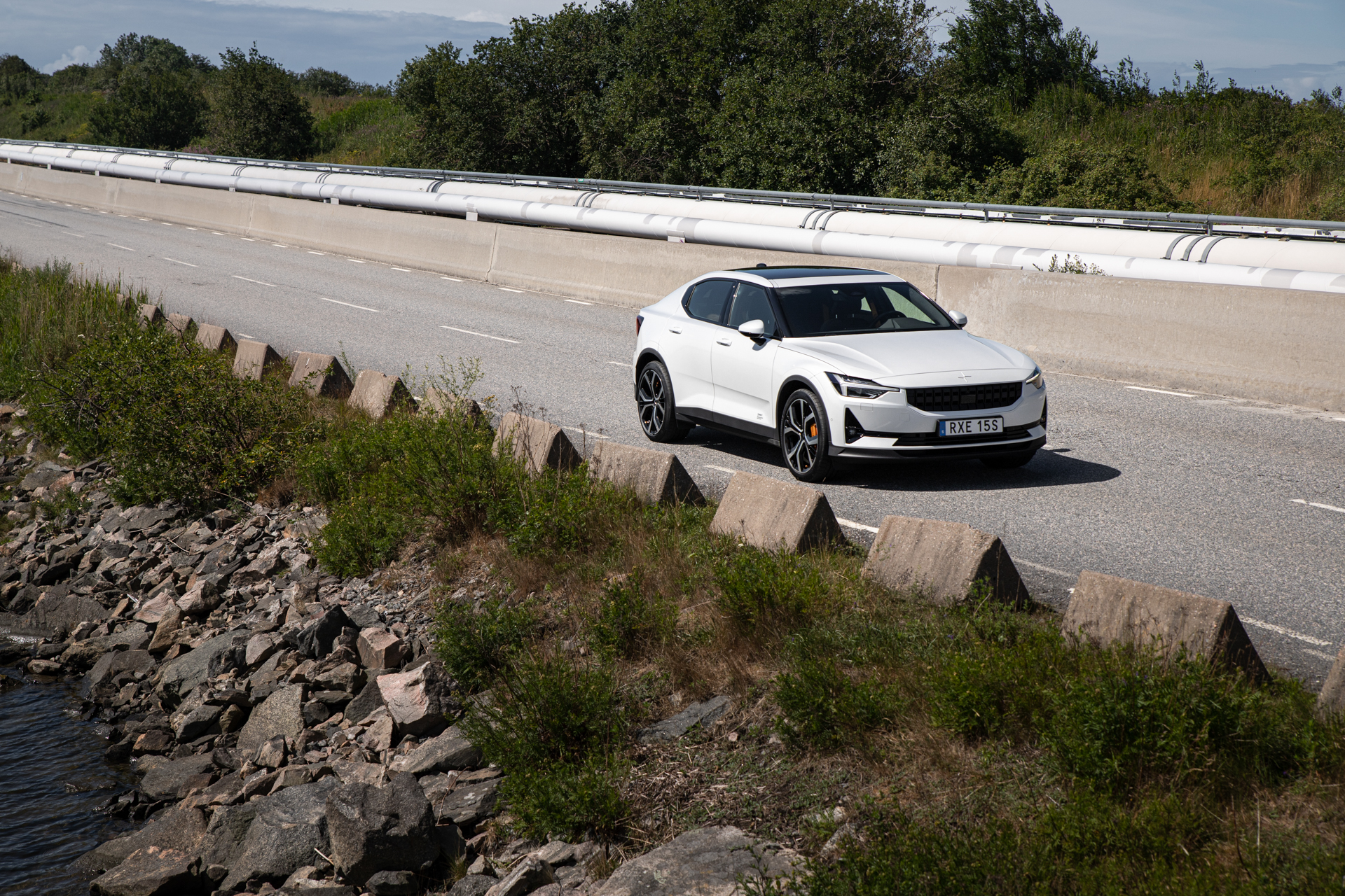 Styrningen erbjuder mer feedback än man förväntar sig – man får snabbt inblick i var däcken befinner sig och hur mycket grepp som finns kvar. Med bilens 408 elektriska kusar är Polestar 2 blixtsnabb och känns oavbrutet pigg, trots vikten på 2123 kg. På kurviga vägar känner man hur kraften skyfflas runt till bilens respektive hjul och det är snudd på omöjligt att få bilen att tappa greppet. Med andra ord är nya Polestar 2 genuint rolig att köra och dessutom lätt att köra satan med. Komforten är hög med undantag av vägljudet som är snäppet för påtagligt.