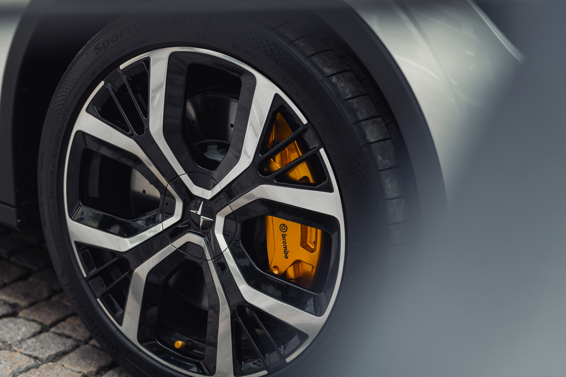 Vår testbil var utrustad med det så kallade Performance-paketet som innefattar dämpare med 22 olika ställbara lägen, andra fälgar och sportdäck, och Brembo-bromsar. Syftet med paketet är att framhäva bilens körglada sida – för att citera Thomas Ingenlath, Polestars VD – ”även om inte kunden någonsin kommer köra på den nivån som paketet tillåter, är det skönt att veta att bilen har förmågan.”