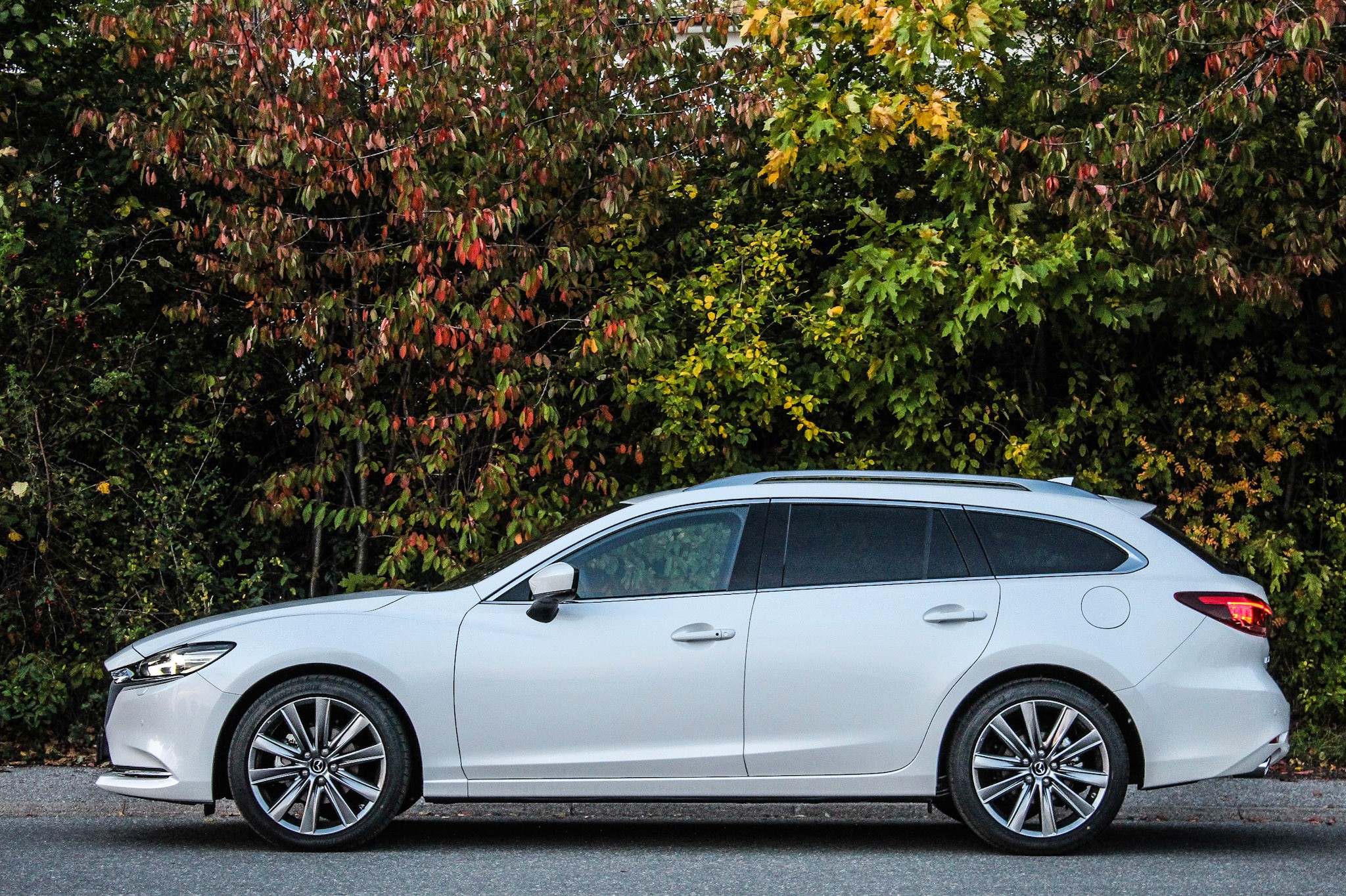 Exteriören har fått sig en väldigt mild uppdatering som huvudsakligen består av en lite blingigare grill och nya framlyktor. Kombin är långt ifrån ful, men sedanen ser bättre ut, delvis för att den lustigt nog har en längre hjulbas (för att även passa den amerikanska marknaden). På insidan känns det som att man sitter i en betydligt dyrare bil än en Mazda. Infotainmentsystemet fungerar bra och mittkonsolen är snyggt och praktiskt formgiven.