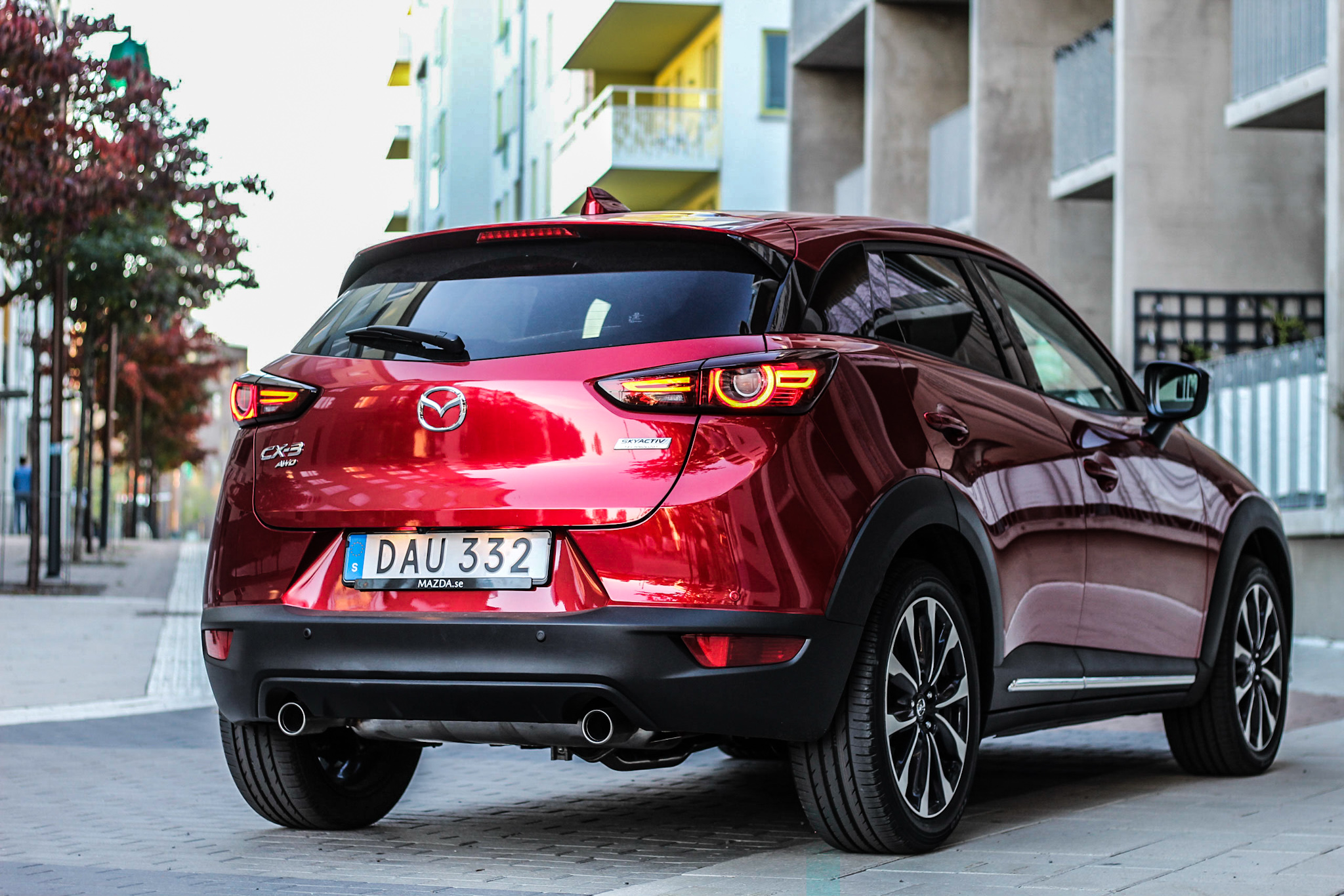 De uppdateringar som CX-3 får syns egentligen inte alls men om man tittar noggrant ser man att fronten ser lite annorlunda ut. De har dock inte lyckats förstöra det fenomenala utseendet CX-3 levererade från första bilen. Bilen är skitsnygg, särskilt bakifrån. Linjerna faller samman i en tuff och aggressiv helhet som är minst sagt tilltalande. CX-3 är tveklöst en av de kaxigaste barnen på gatan.