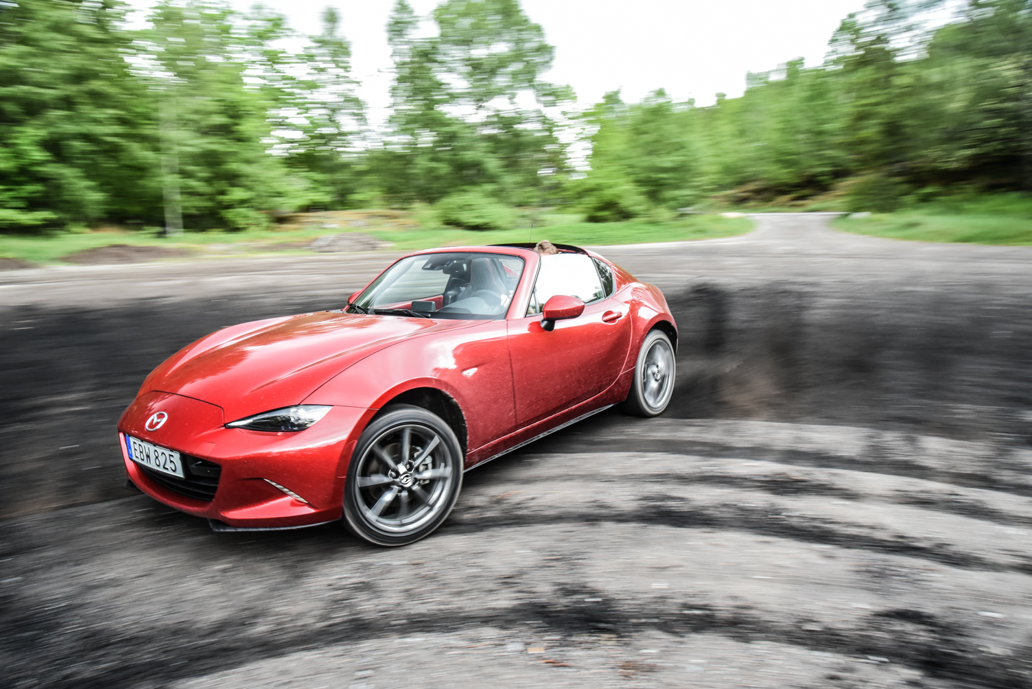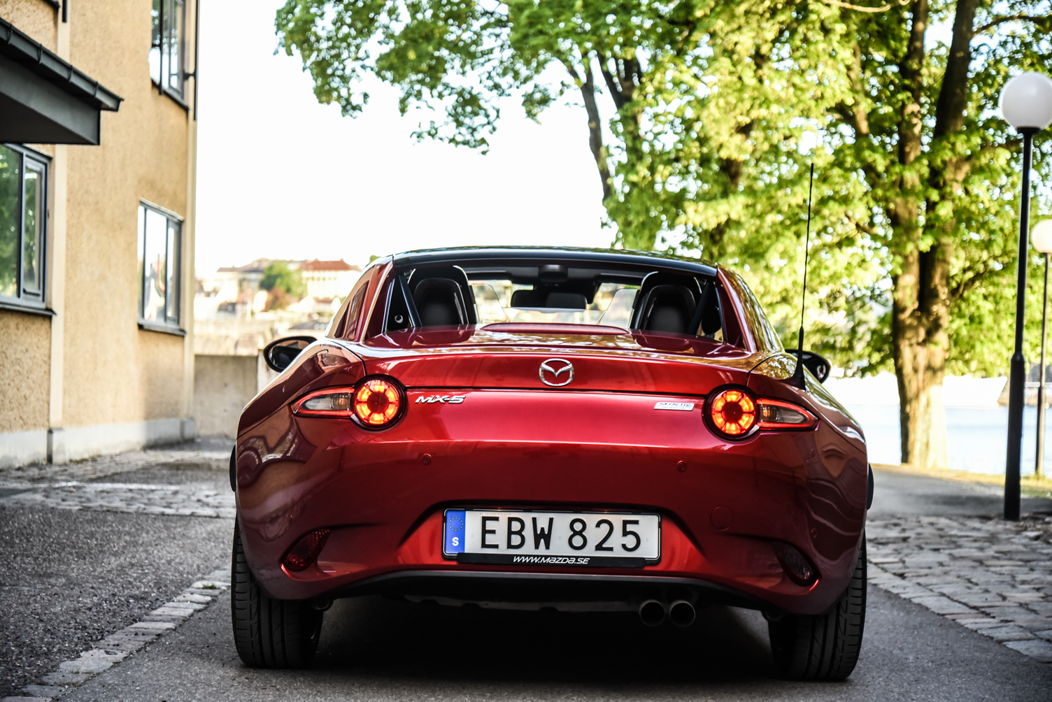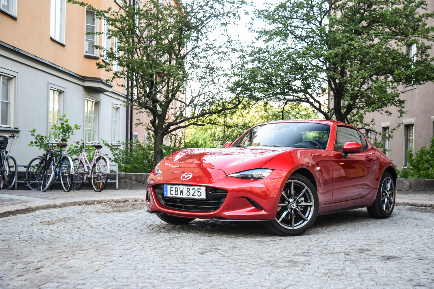 Sverige. Ett land med slaskiga vintrar och regniga sommardagar. Att köpa en cabriolet i ett land med ett så miserabelt klimat som vårt eget är lite som att fylla sin garderob med bikinis om man är bosatt på Antarktis. Trots detta köper folk taklösa bilar i sådana mängder att de flesta märkena som är något att ha erbjuder åtminstone en cabriolet i sitt modellutbud. Om man nu vill ha vinden i håret någon dag eller tre om året är Mazda MX-5 ett av de absolut bästa valen. Dock har den nya versionen aldrig erbjudits med något annat än ett tygtak. Tills nu. Om du vill ha ett plåttak på din MX-5 är detta en möjlighet. Låt oss därför lägga i Högsta Växeln och recensera Mazda MX-5 RF.