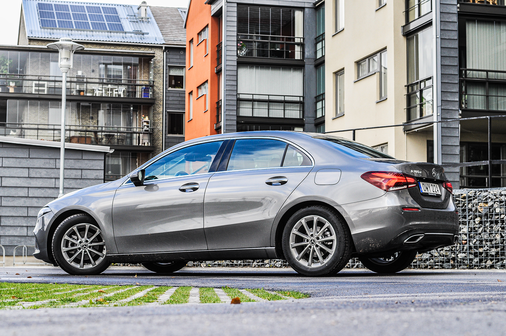 Lyxigt har länge varit synonymt med stort i motorbranschen, men det innebär inte nödvändigtvis att det inte finns en marknad även för små lyxbilar. Att parkera en fem meter lång lyxkryssare av det fläskigare slaget på en trång bakgata på Östermalm är lika svårt oavsett hur mycket pengar man har i plånboken. Dessutom finns det de som gärna vill köra en ny, lyxig bil men som likväl inte vill lägga mer pengar än absolut nödvändigt på sitt transportmedel. För alla dessa människor finns nu ett nytt, spännande alternativ – möt Mercedes-Benz A 180 d. Det handlar, som namnet antyder, om en helt vanlig Mercedes A-klass, men den praktiska sosse-luckan har bytts ut mot flådig sedan-kaross. Är Mercedes minsta sedan något att ha? Låt oss lägga i Högsta Växeln och ta reda på det!