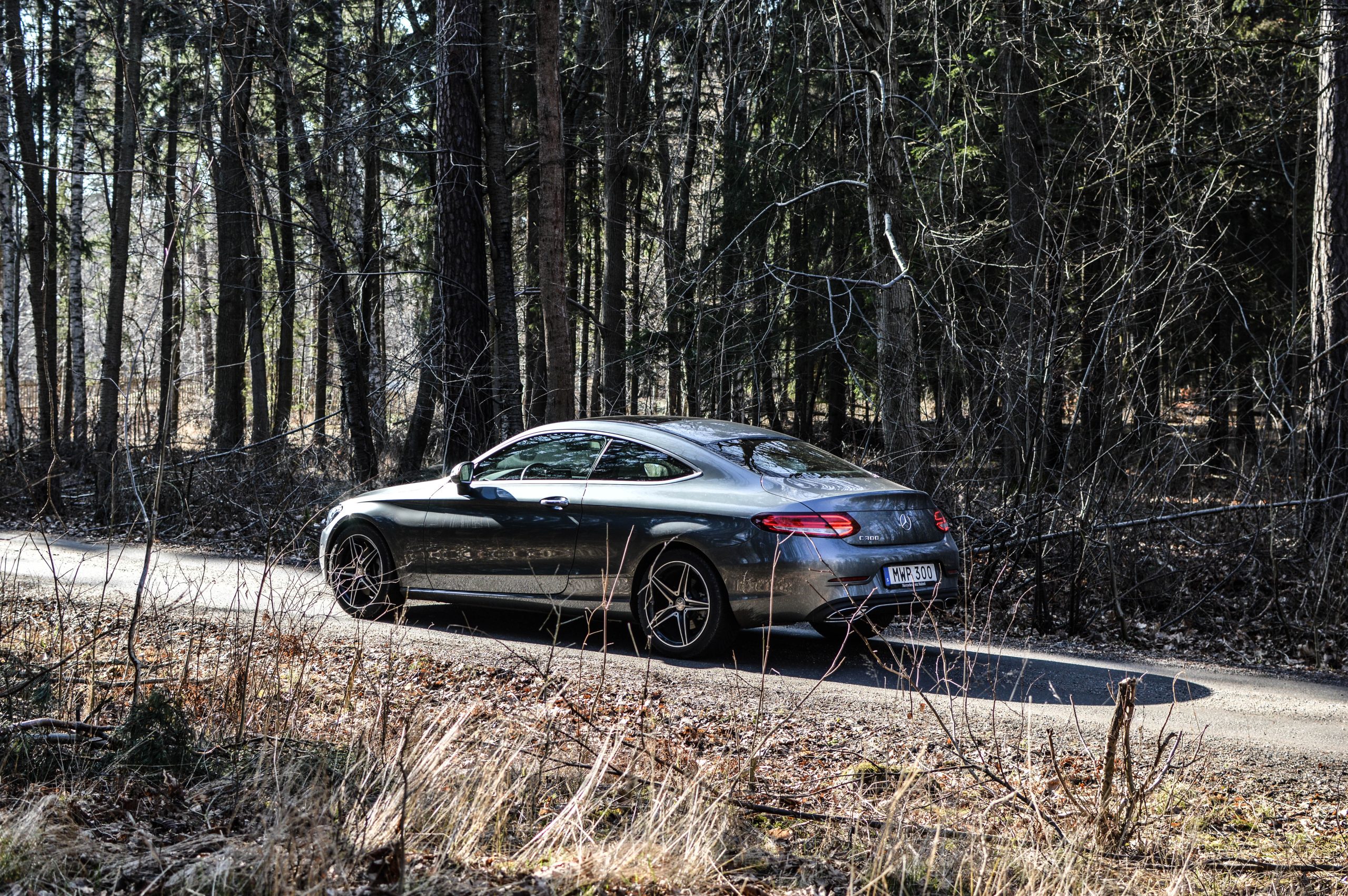 Faktum är dock att i sport-plus-läget så är bilen förvånansvärt munter. Ett minus är dock att man behöver leta sig in i en labyrint av delmenyer i displayen mellan hastighets- samt varvtalsmätaren innan man kan stänga av stabilitetskontrollen. Att Mercedes inte ens gjorde en enskild knapp för ändamålet – precis som alla andra bilar på marknaden i stort sett – ger ytterligare belägg för att det knappast är en bil som är till för att köras med syfte att utplåna bakdäcken som i en Mercedes-AMG C63 S. En bisyssla vi minst sagt roas av. Det kan dock poängteras att man kan göra burnouts med hjälp av envishet och ett någorlunda fuktigt underlag. Det känns ändock lika passande för en C300 Coupé som att köra en Mercedes-Benz S500 på bana.
