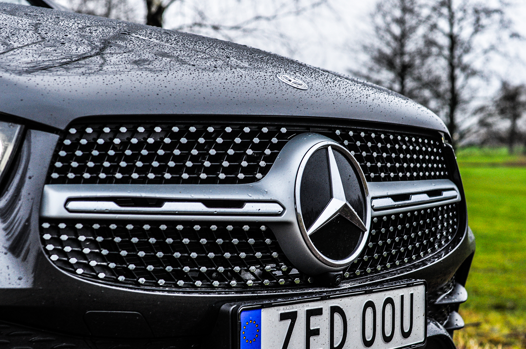 Du kan få flera olika mönster i grillen på GLC. Denna variant, med små punkter i ett rutnät som är en del av AMG Line-paketet, är nog den snyggaste.