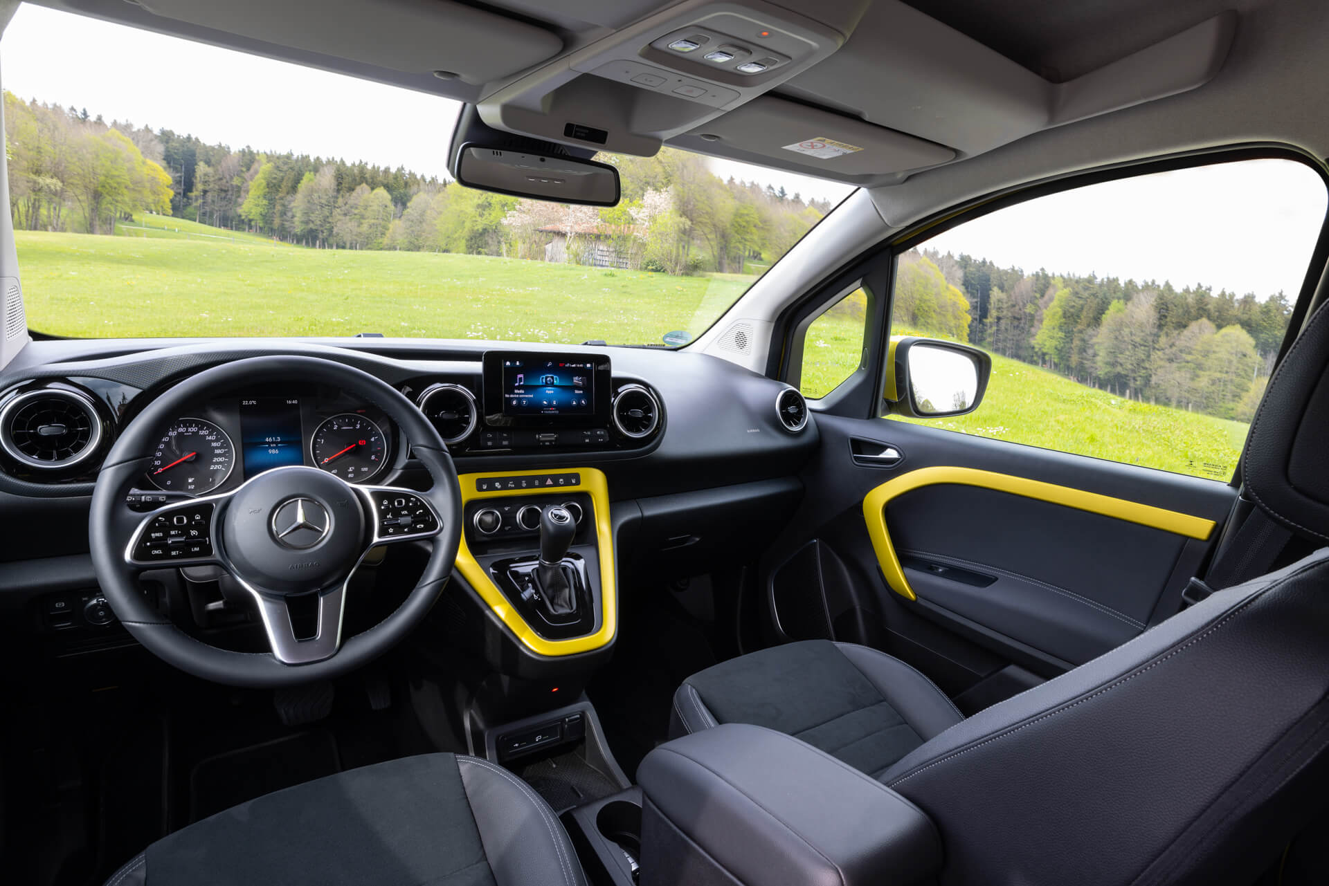 Mercedes var även nog med att poängtera att det segment som T-klass tar sig an består av ett klientel där det kördynamiska nästintill är totalt ointressant. Till Sverige kommer till en början bara två drivlinor, närmare bestämt T180 (bensin) och T180d (diesel), båda med en sjustegad dubbelkopplingslåda. I slutet av 2022 kommer även helt elektriska EQT.